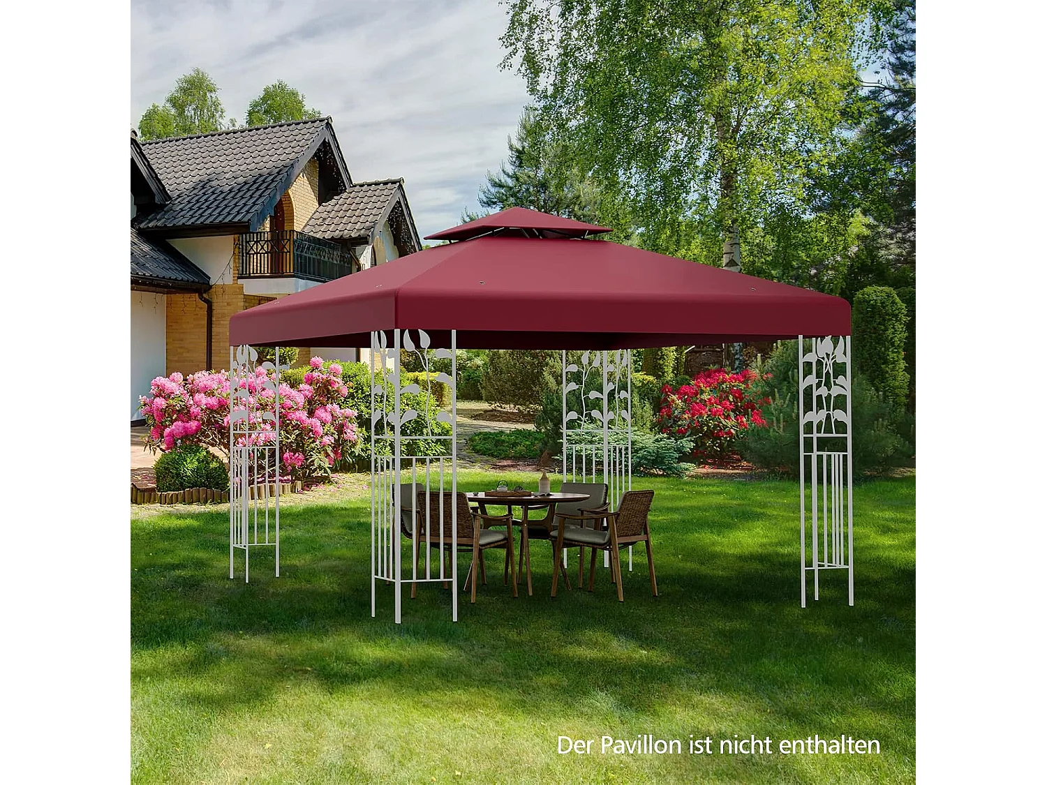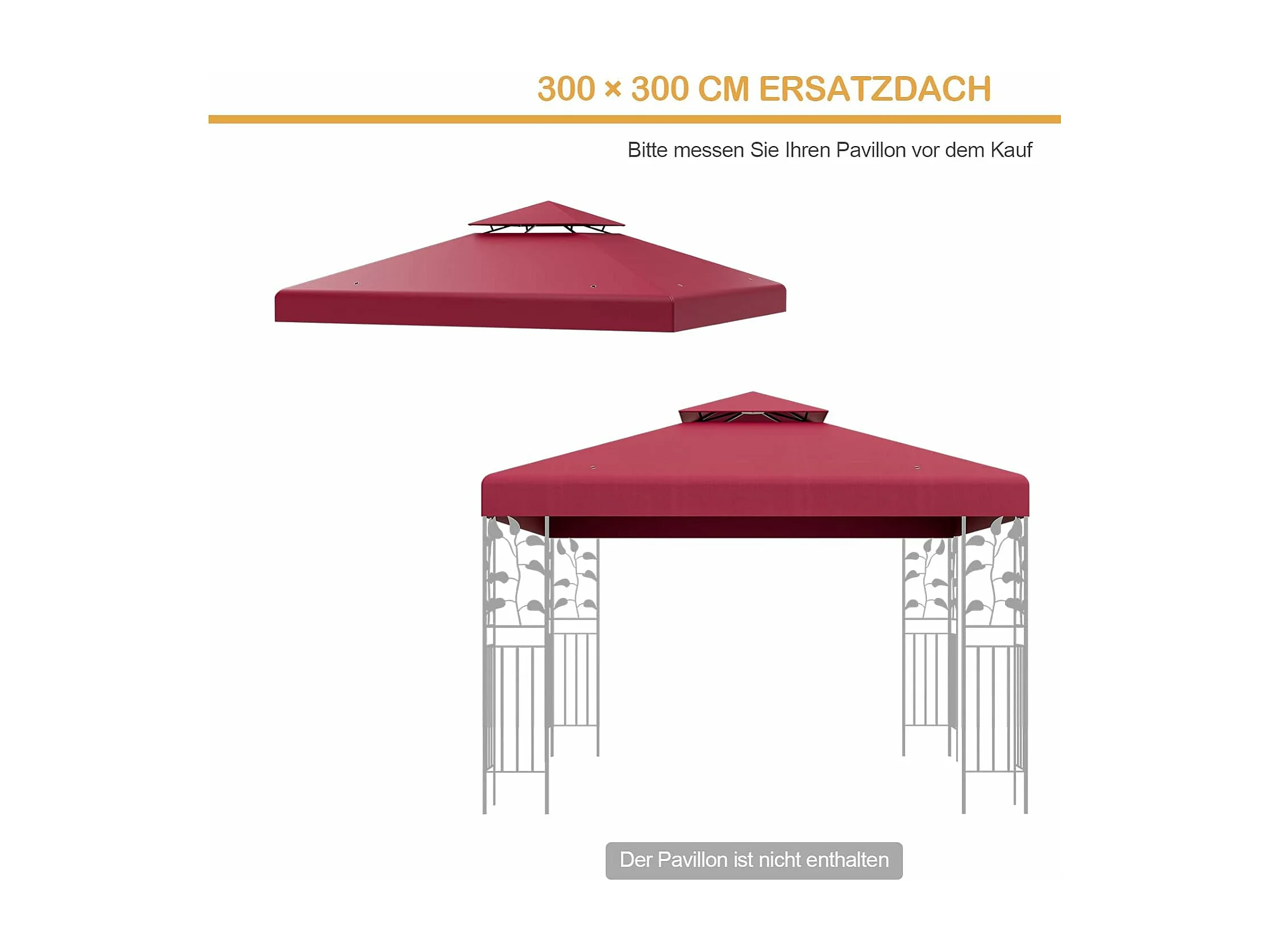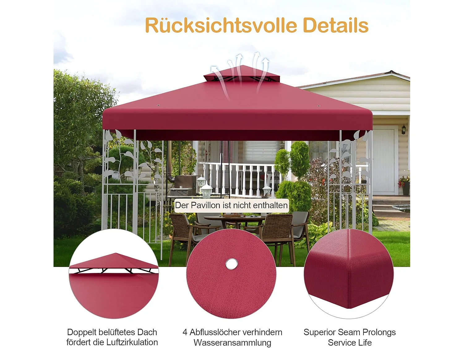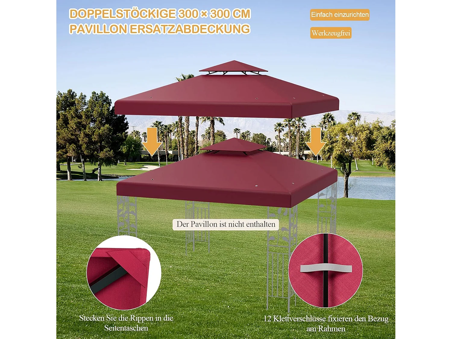3 x 3 m reservedak voor tuinpaviljoen, paviljoendak, vervangende hoes met afvoergaten en klittenband (wijn)ZB32749