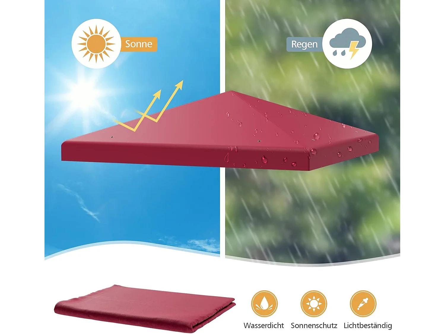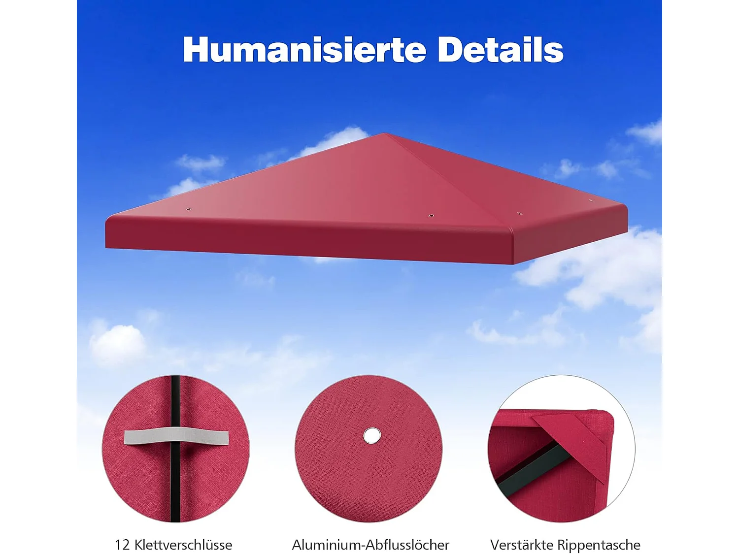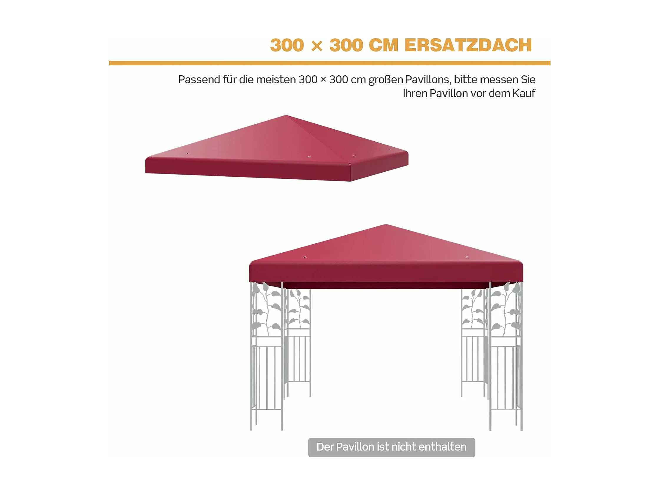 3 x 3 m reservedak voor tuinpaviljoen, paviljoendak, vervangende hoes met afvoergaten en klittenband (wijn)ZB32749