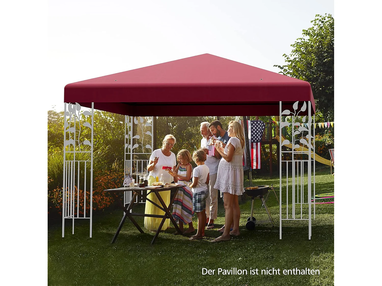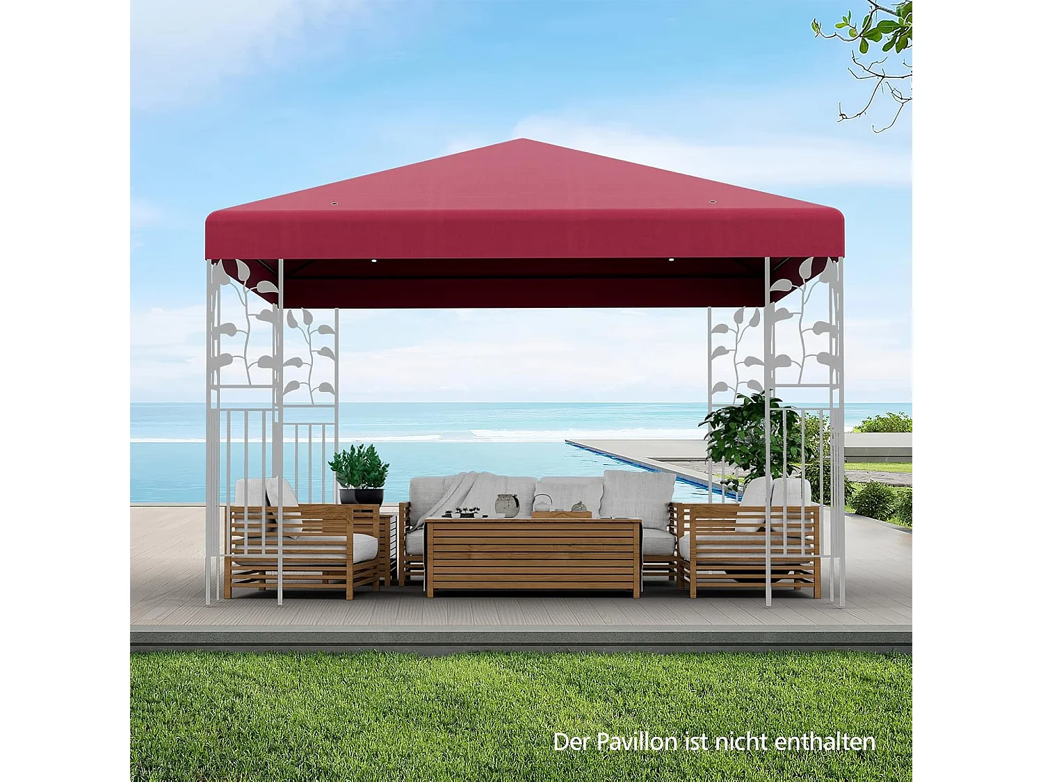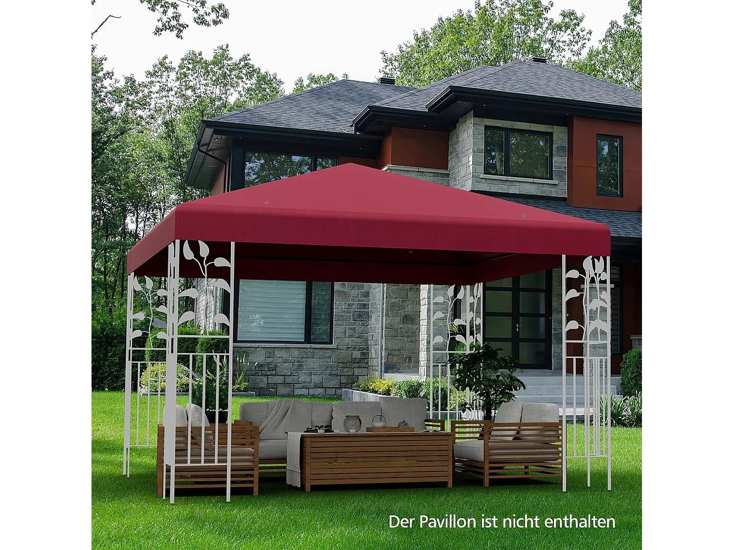 3 x 3 m reservedak voor tuinpaviljoen, paviljoendak, vervangende hoes met afvoergaten en klittenband (wijn)ZB32749