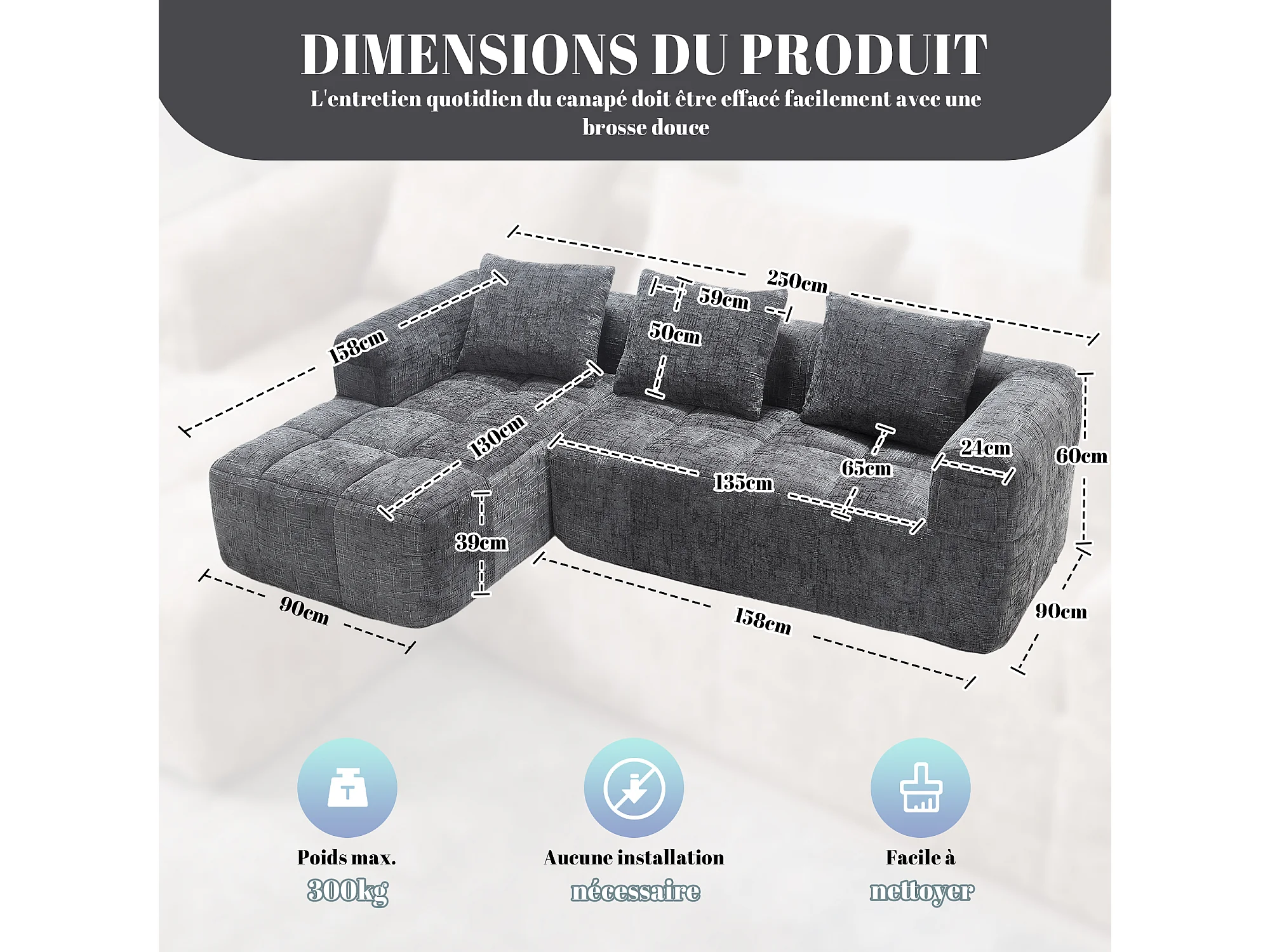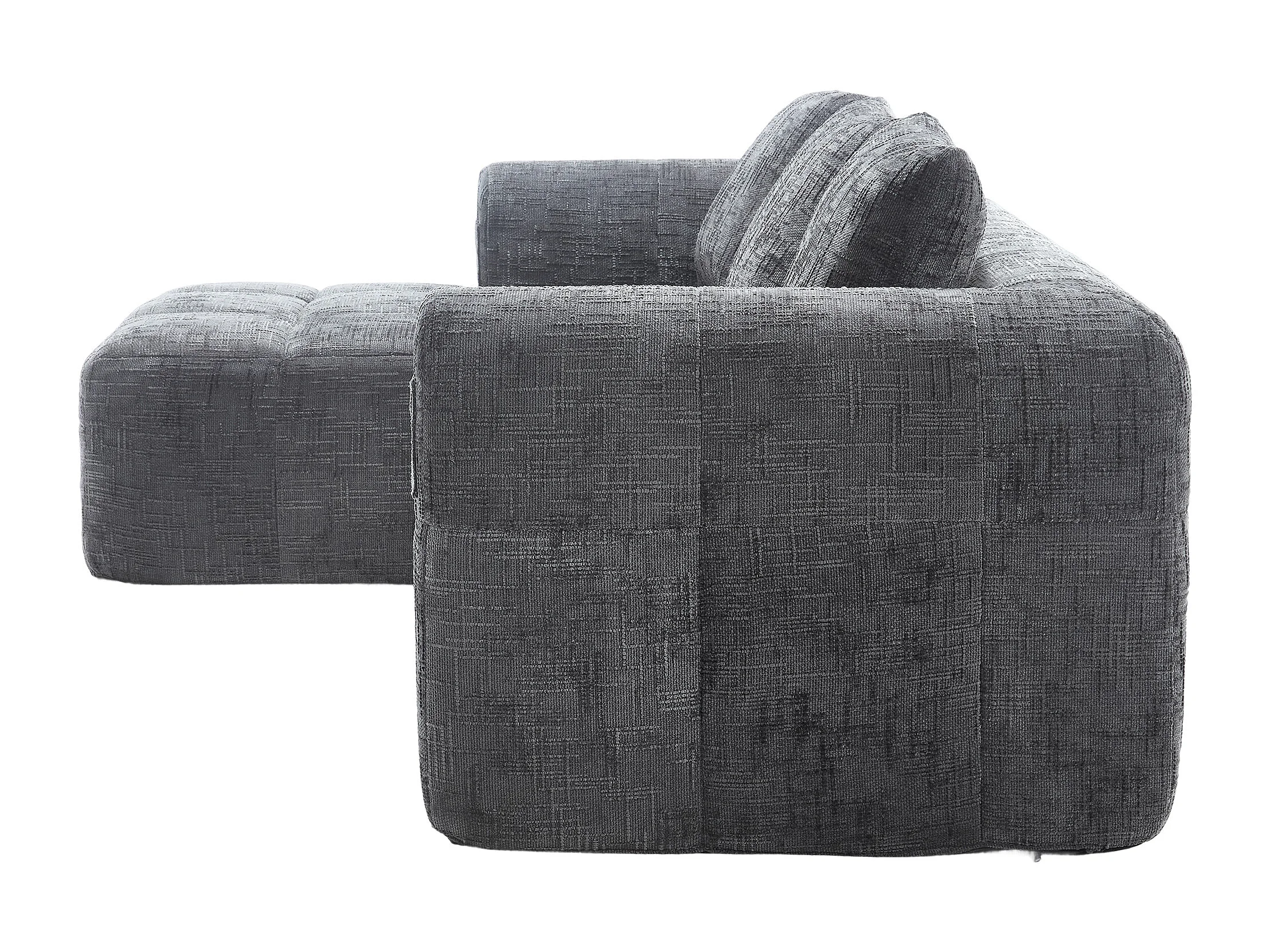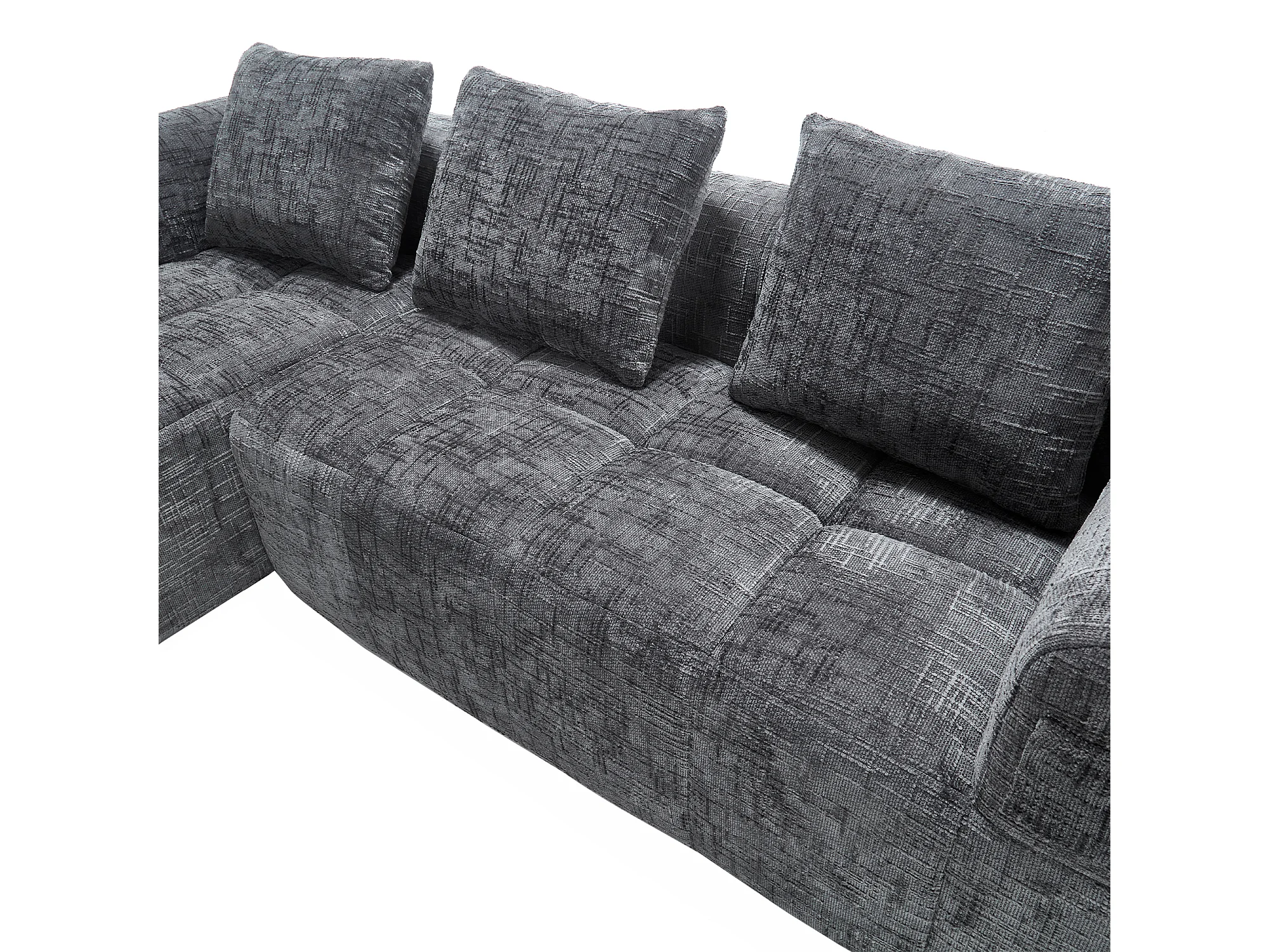 3-zits L-vormige hoekbank met 3 kussens en zijvak - Grijze chenille
