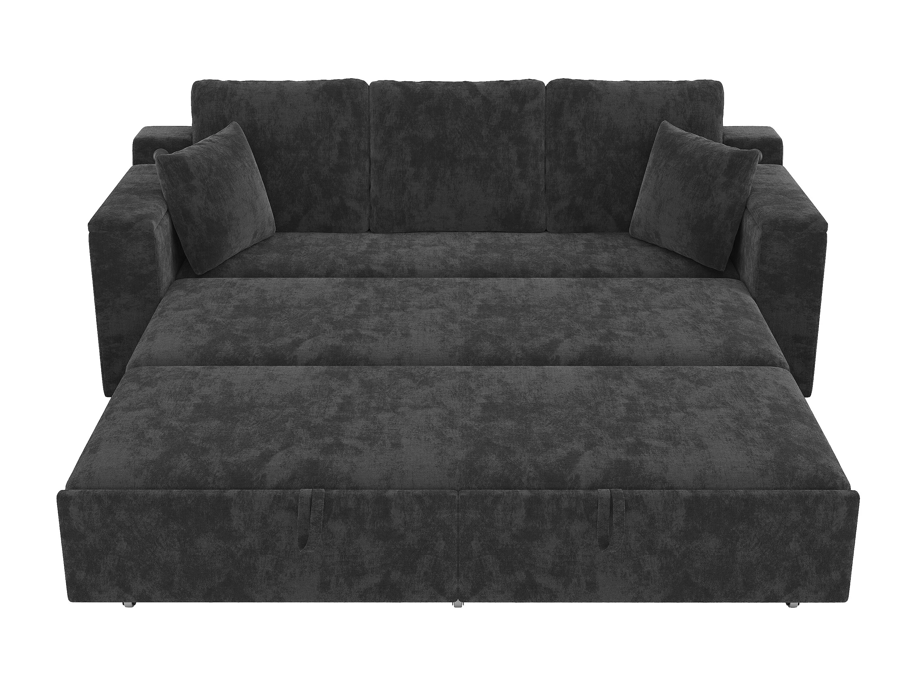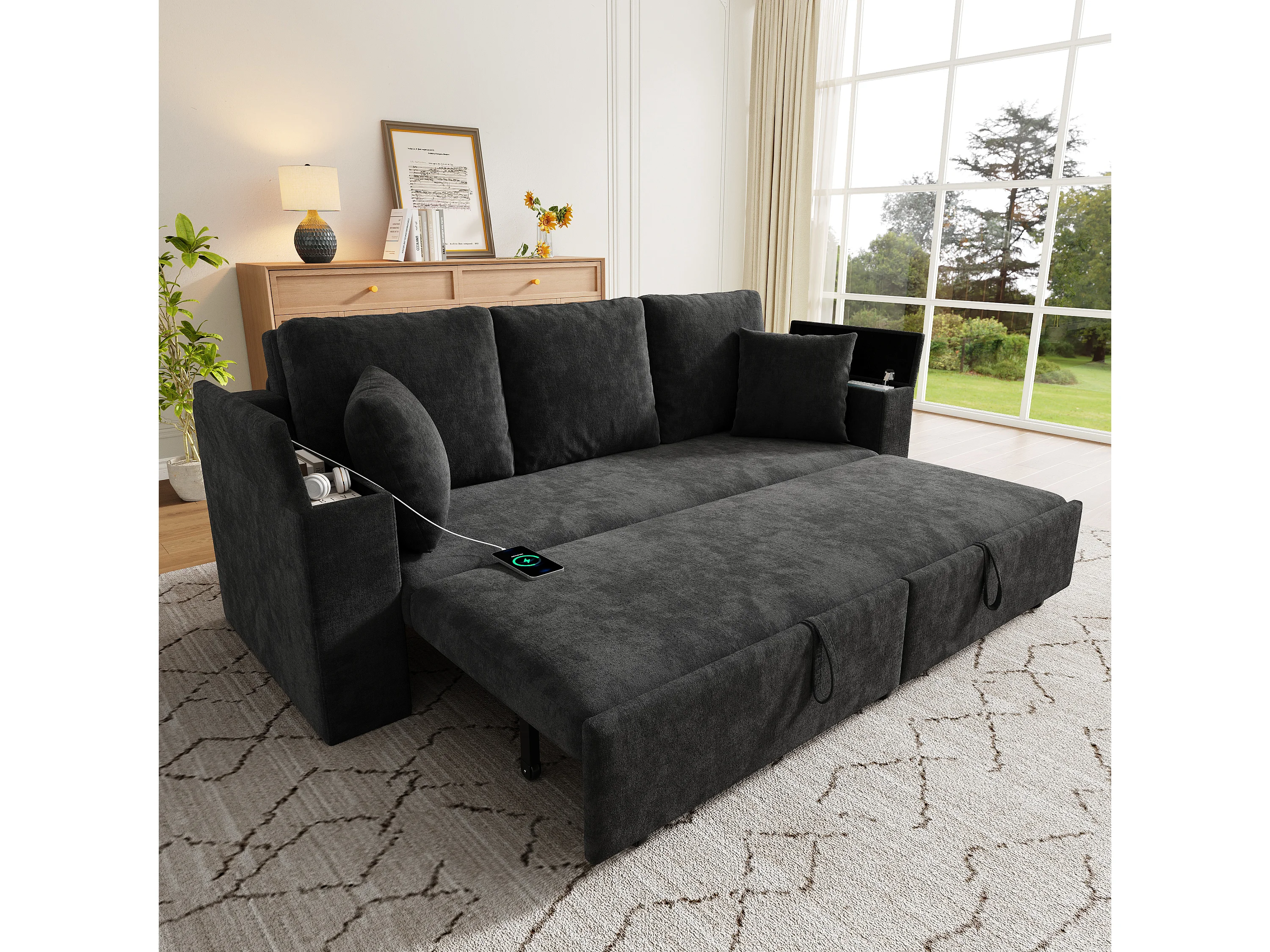 3-zits slaapbank - 210,5 x 192 x 93 cm - met opbergruimte + USB-poort - uitschuifbaar metalen frame - fluweel - grijs