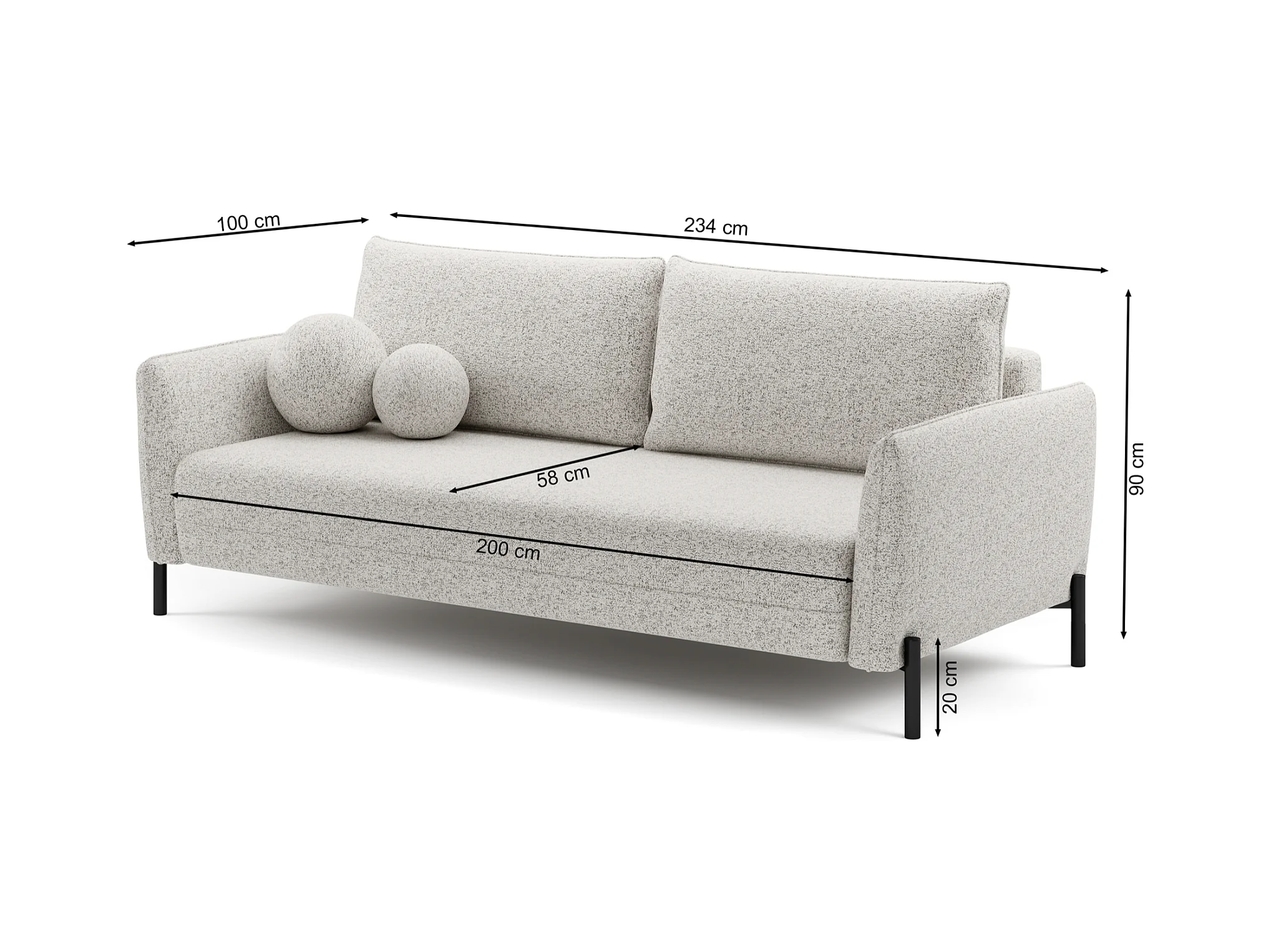 3-zits slaapbank - in waterdichte grijze chenillestof - RANE