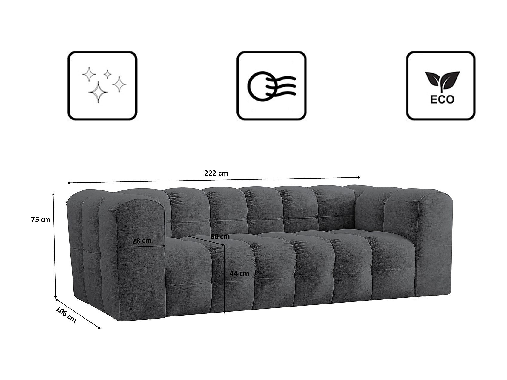 3-zitsbank, comfortbank BALOO, stof Schenille, grafiet