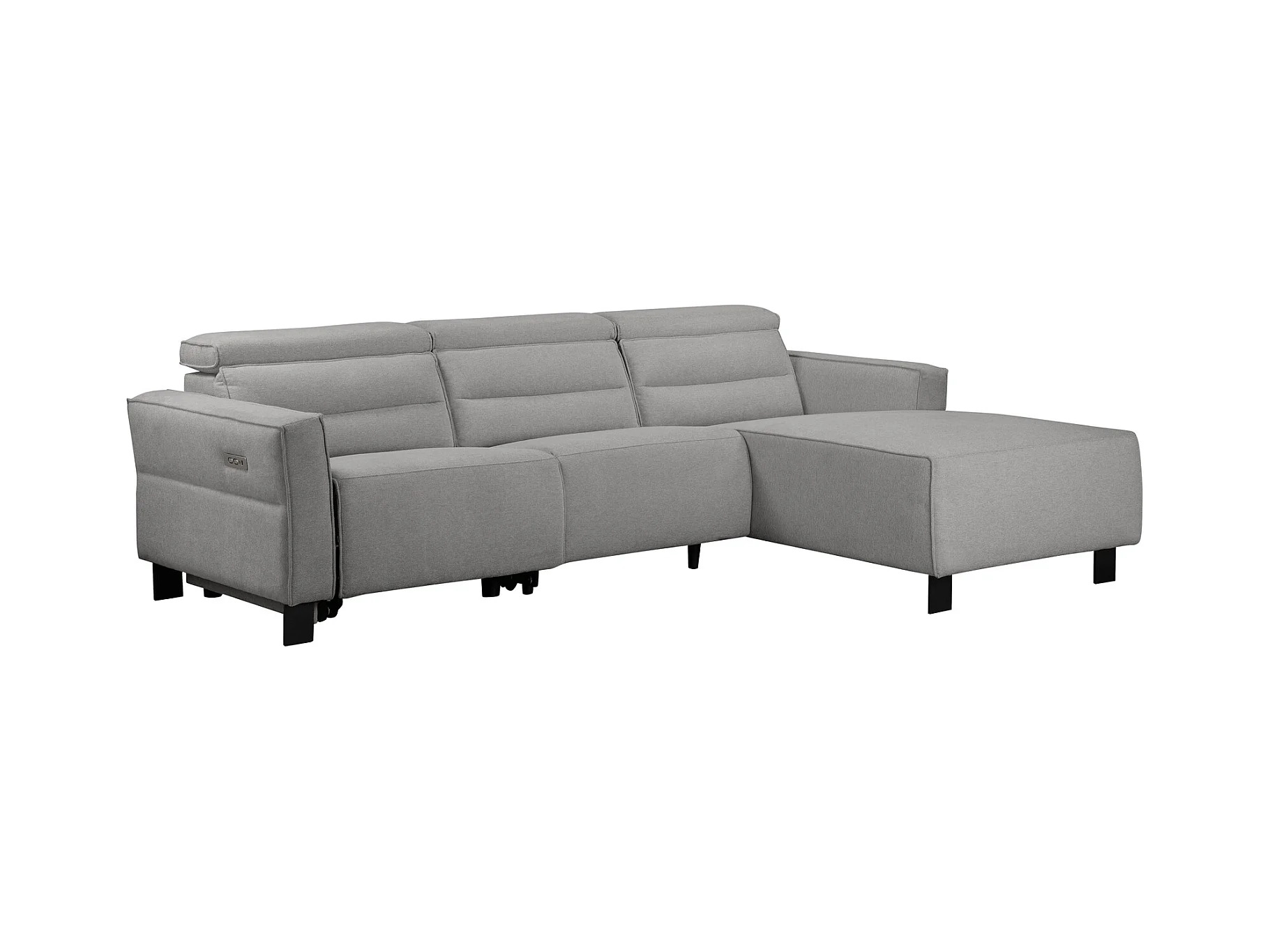 3-zitsbank met 1 elektrische verstelbare rugleuning in lichtgrijze stof