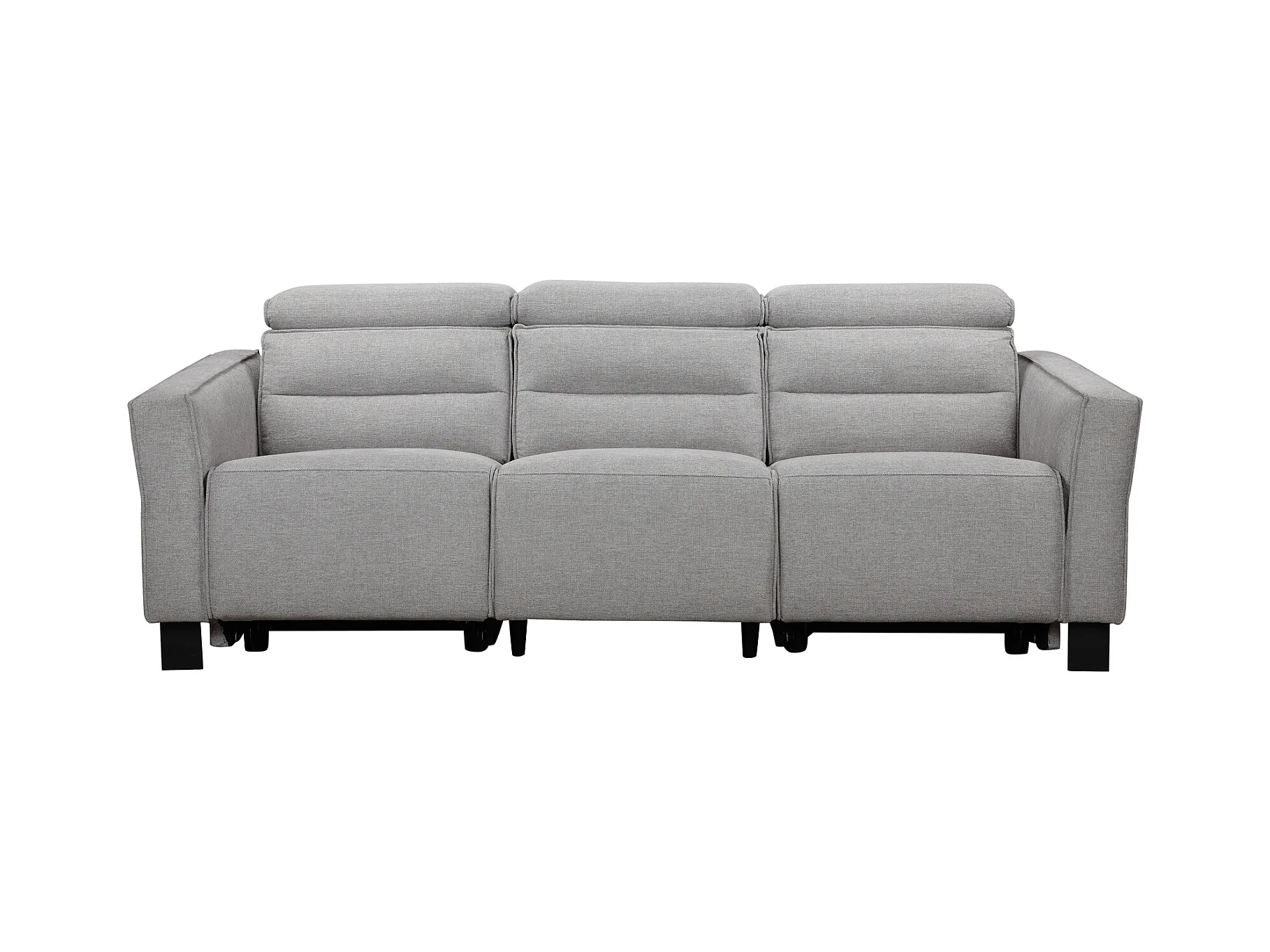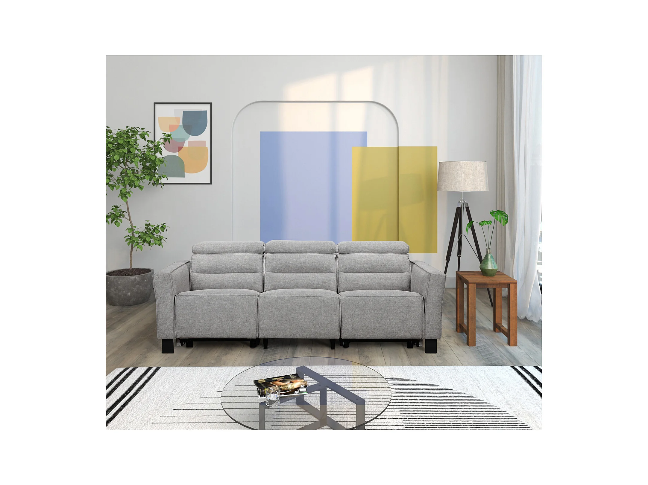 3-zitsbank met 2 elektrische verstelbare rugleuningen in lichtgrijze stof