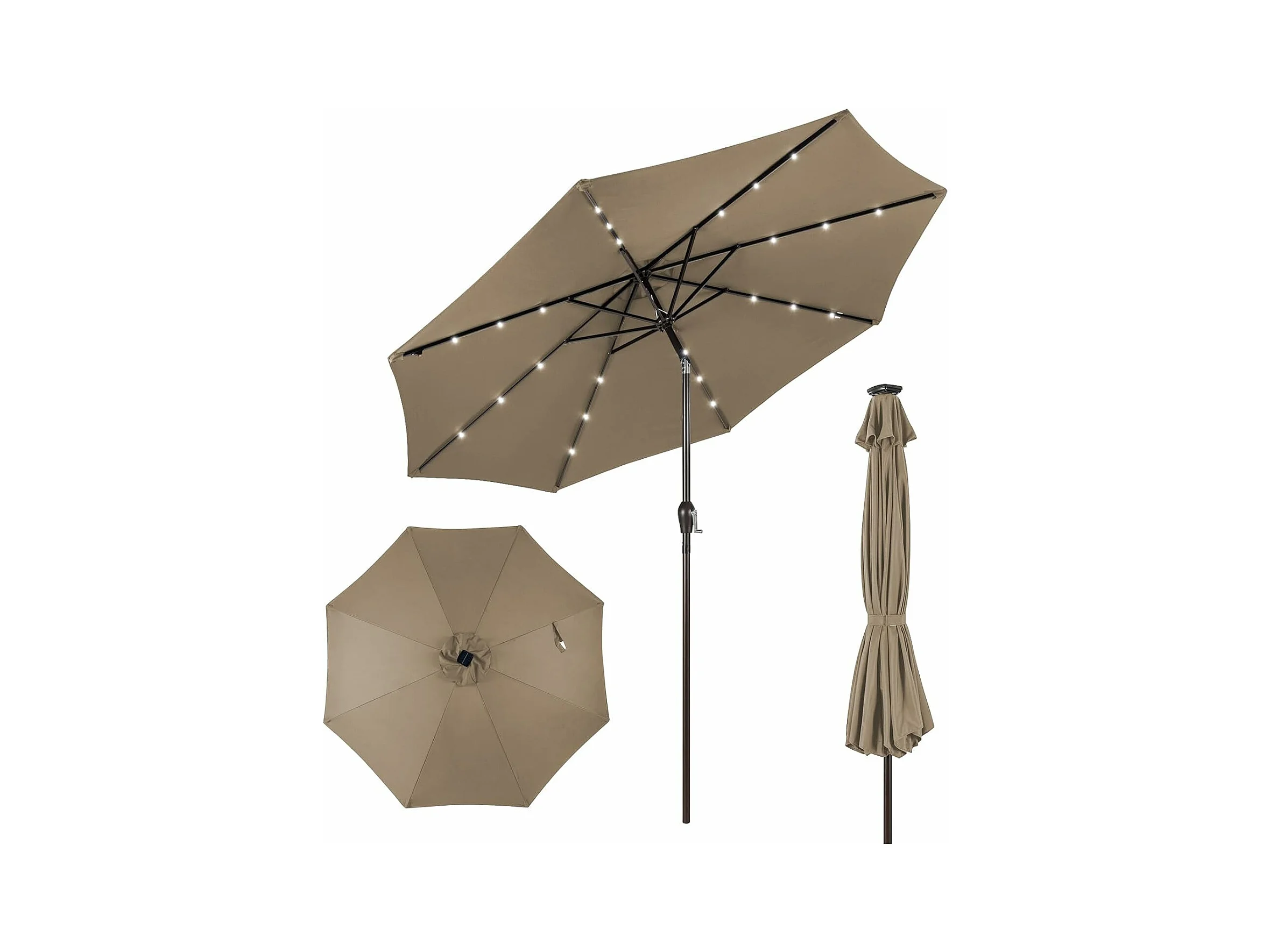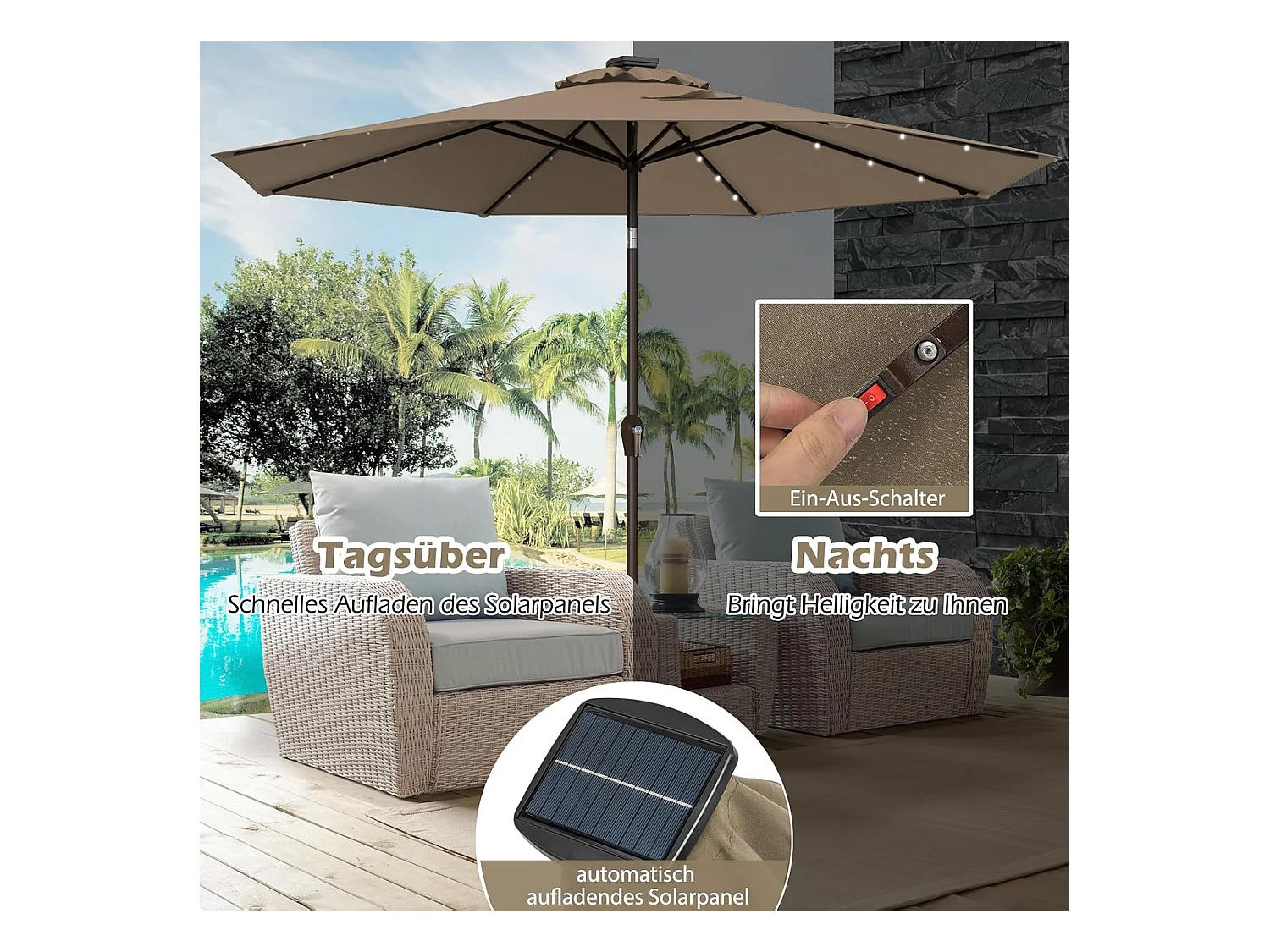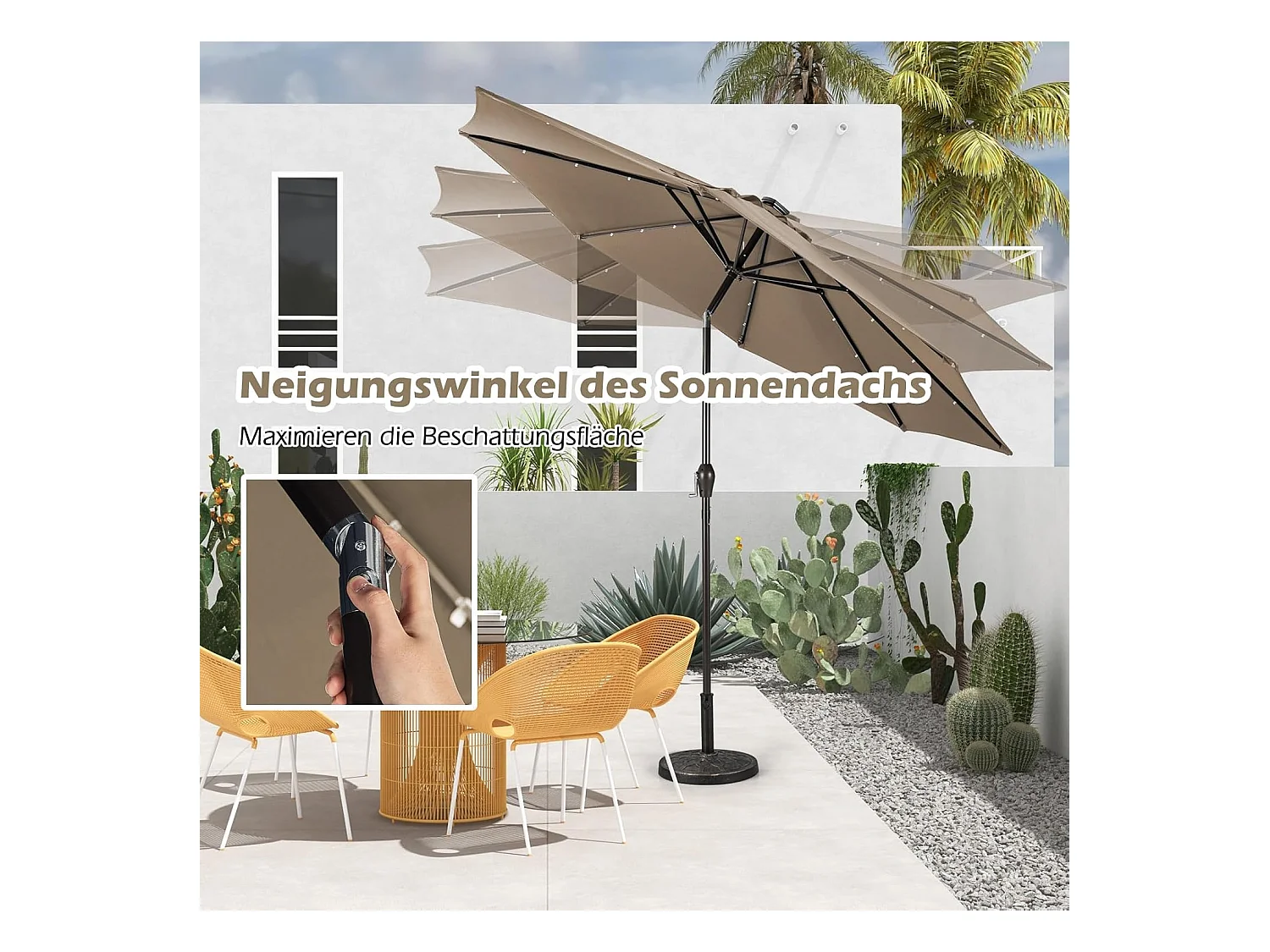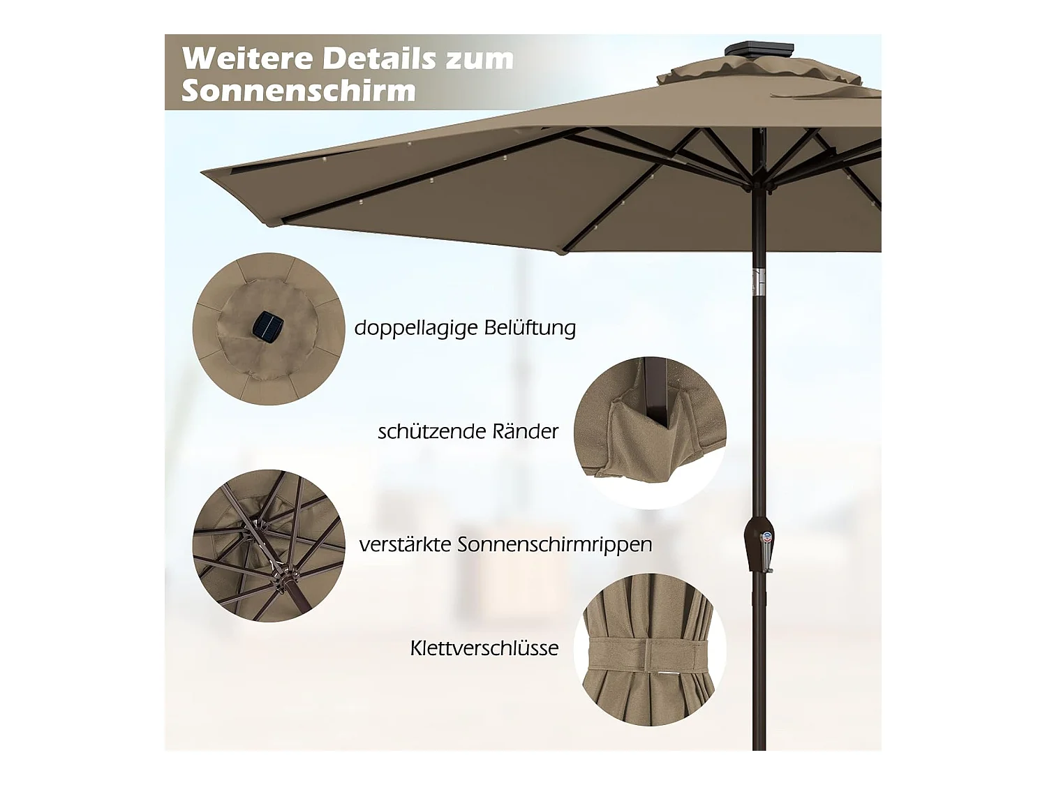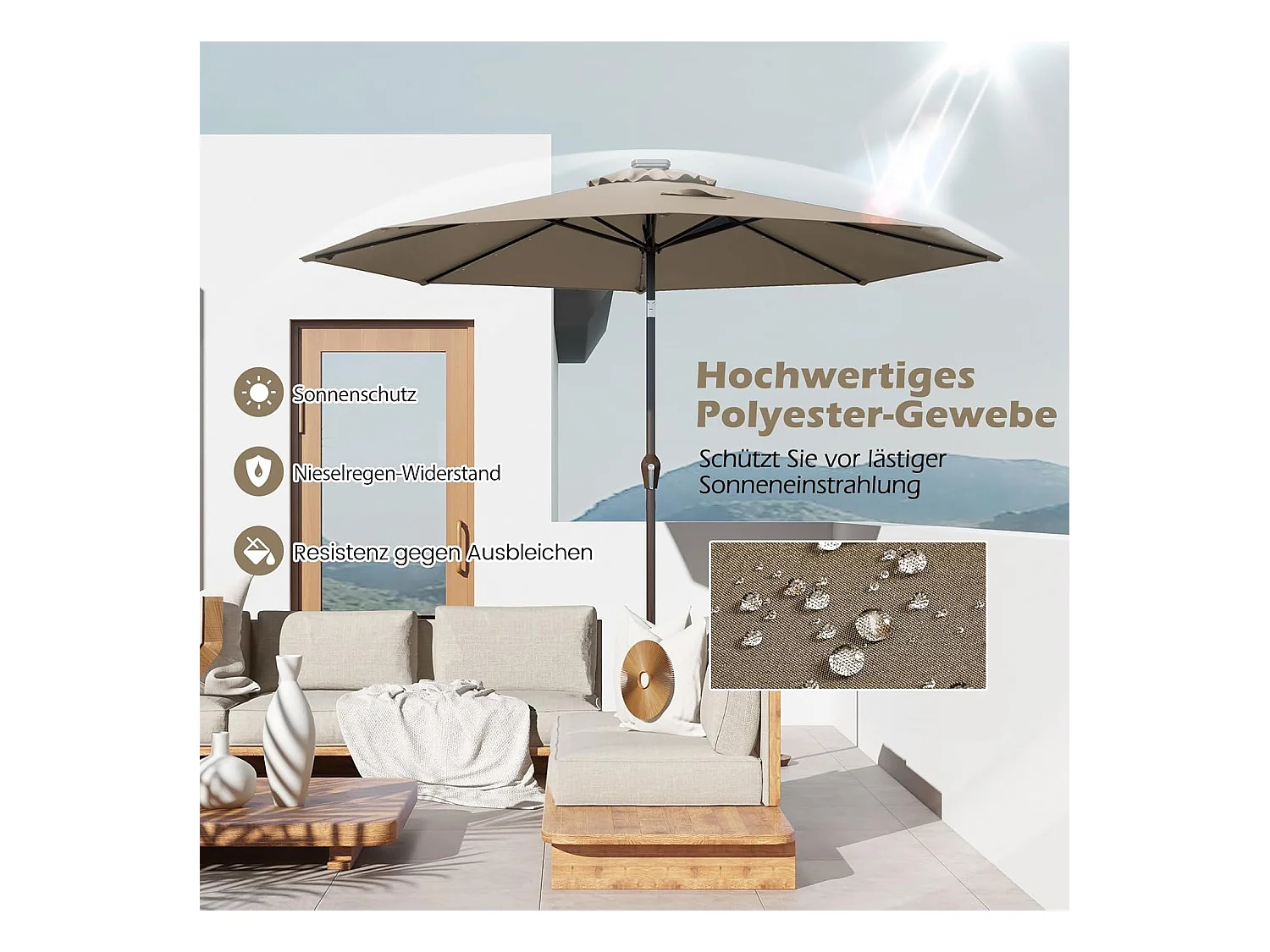 300 cm led-parasol, tuinparasol, marktscherm met solarverlichting, terrasparasol achthoek, zwengelparasol, strandscherm, zweefparasol, ZB33616