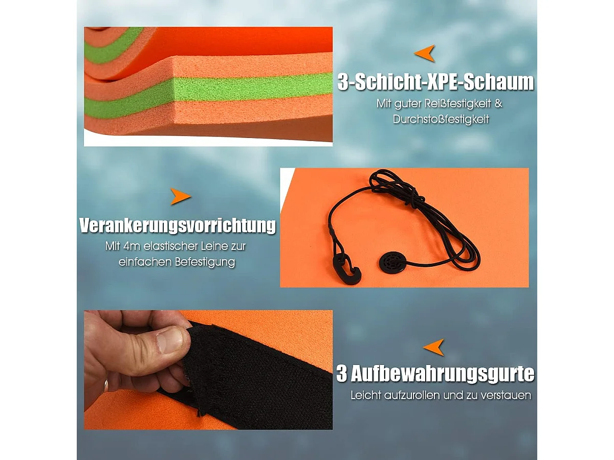Zwemmat 210x66cm, drijvende watermat tot 60 kg belastbaar,van scheurbestendig XPE-schuim,waterhangmat voor kinderen en volwassenen (oranje)AB92211