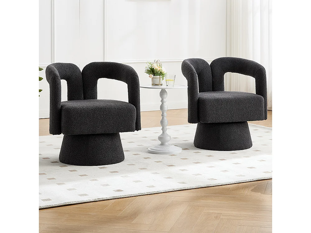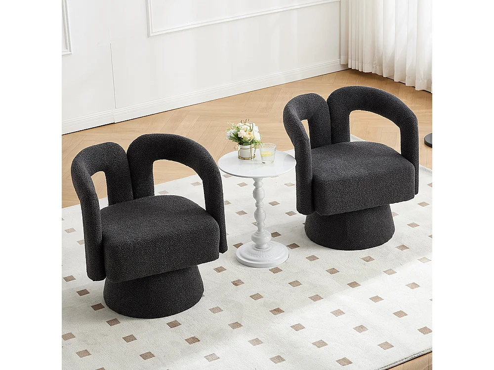 360° draaibare bijzetstoel rond breed zachte stoffen bekleding donkergrijs meerdere stuks