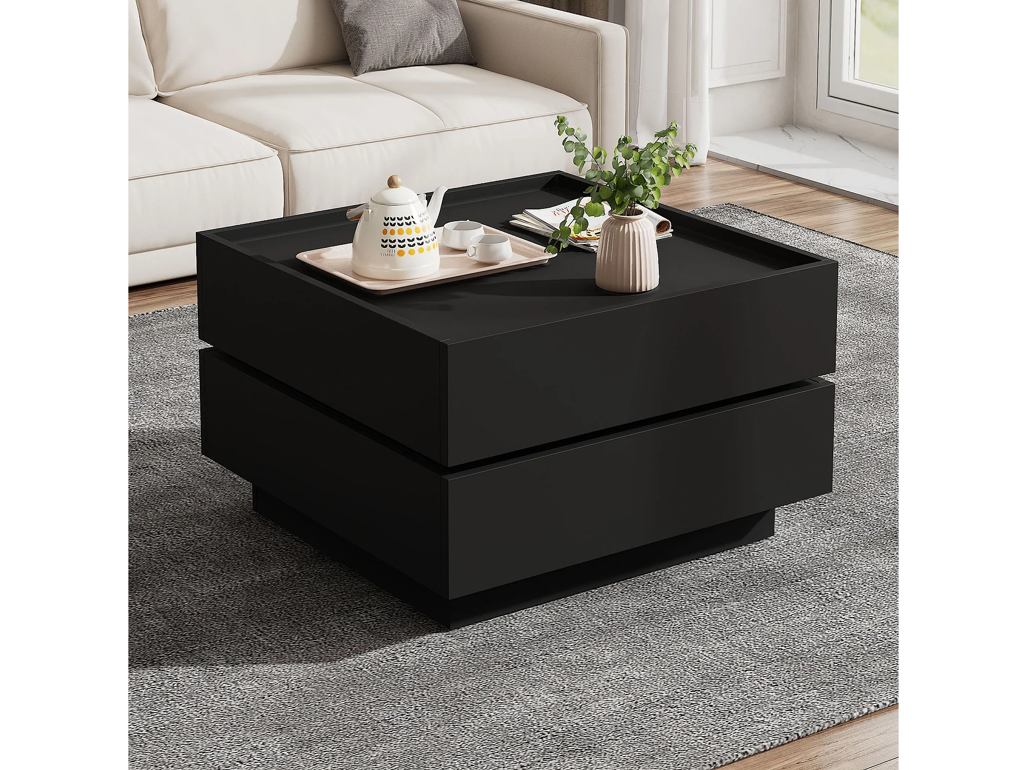 Vierkante salontafel met 360 graden rotatie - met opbergvak, zwart + wit