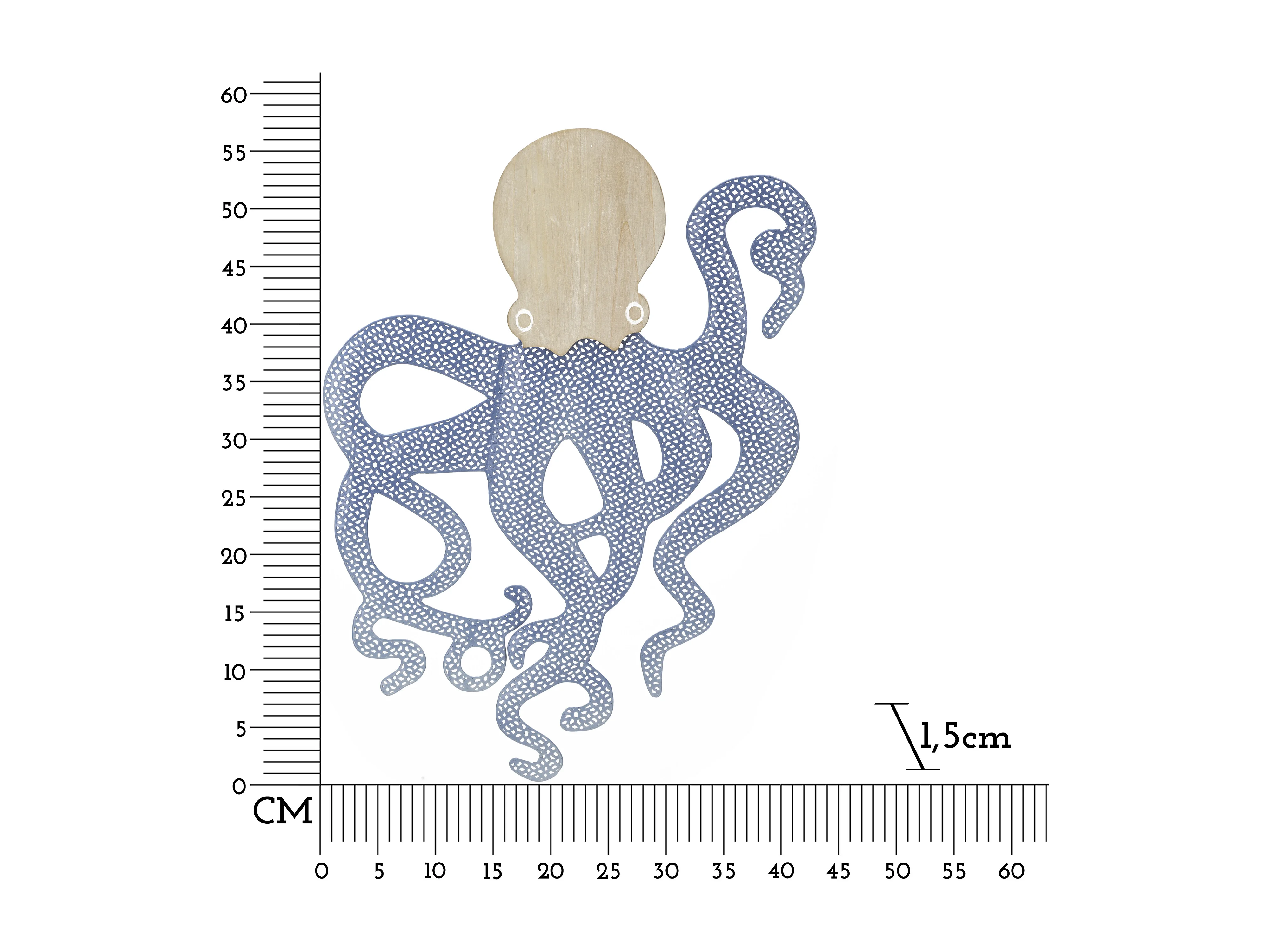 3D decoratief paneel in blauwe metalen octopus 41x1,5x57 cm