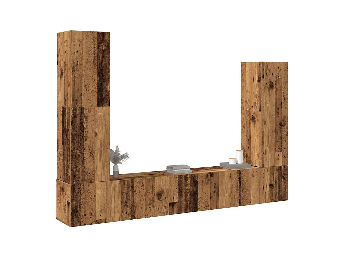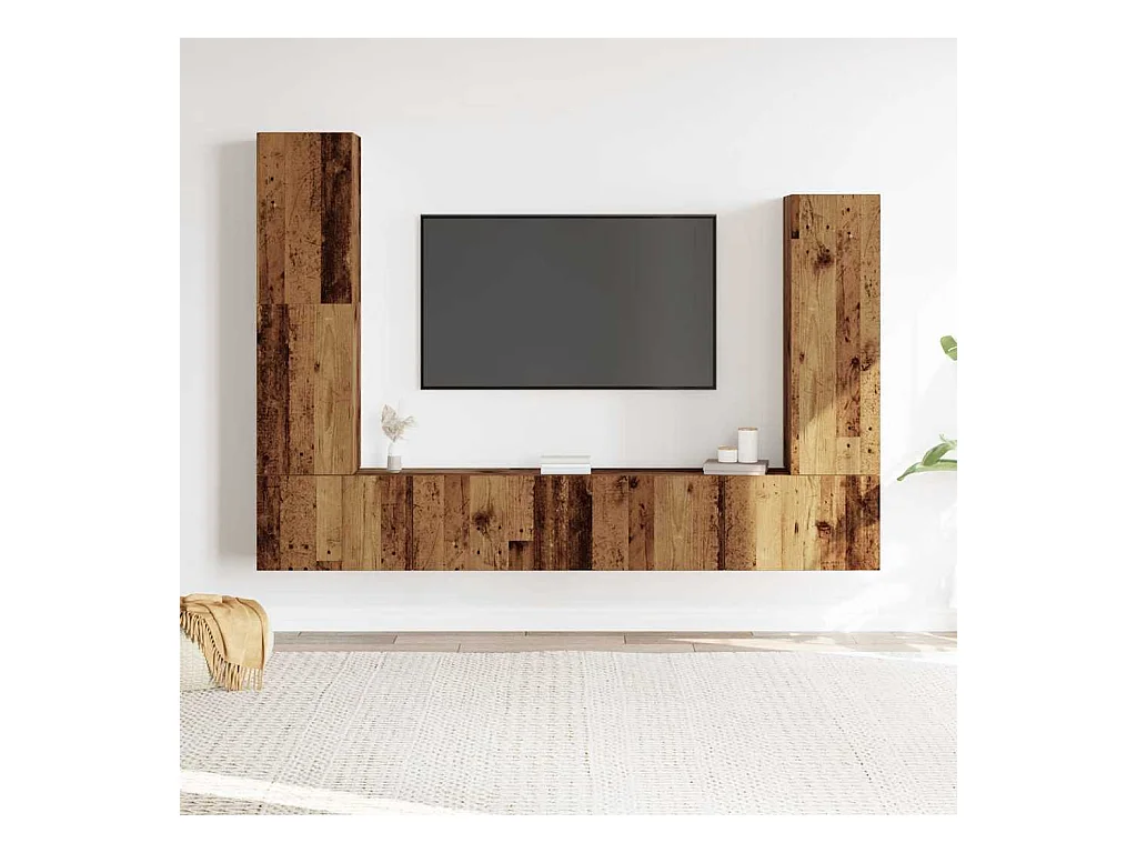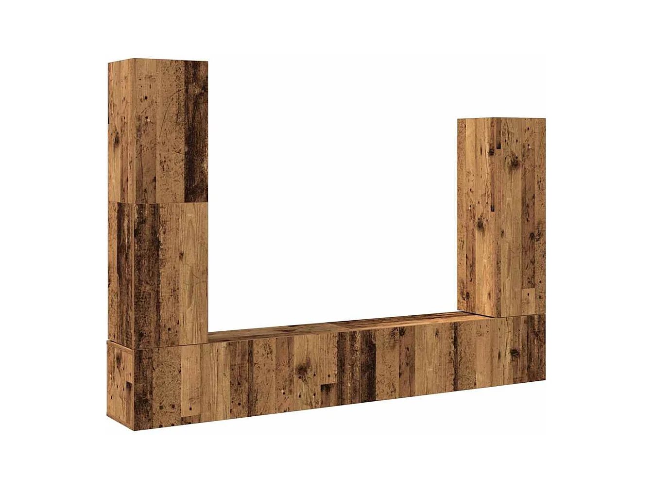 7-delig Tv-meubelset | Tv-Bank | TV-kast wandmontage bewerkt hout oud houtkleurig