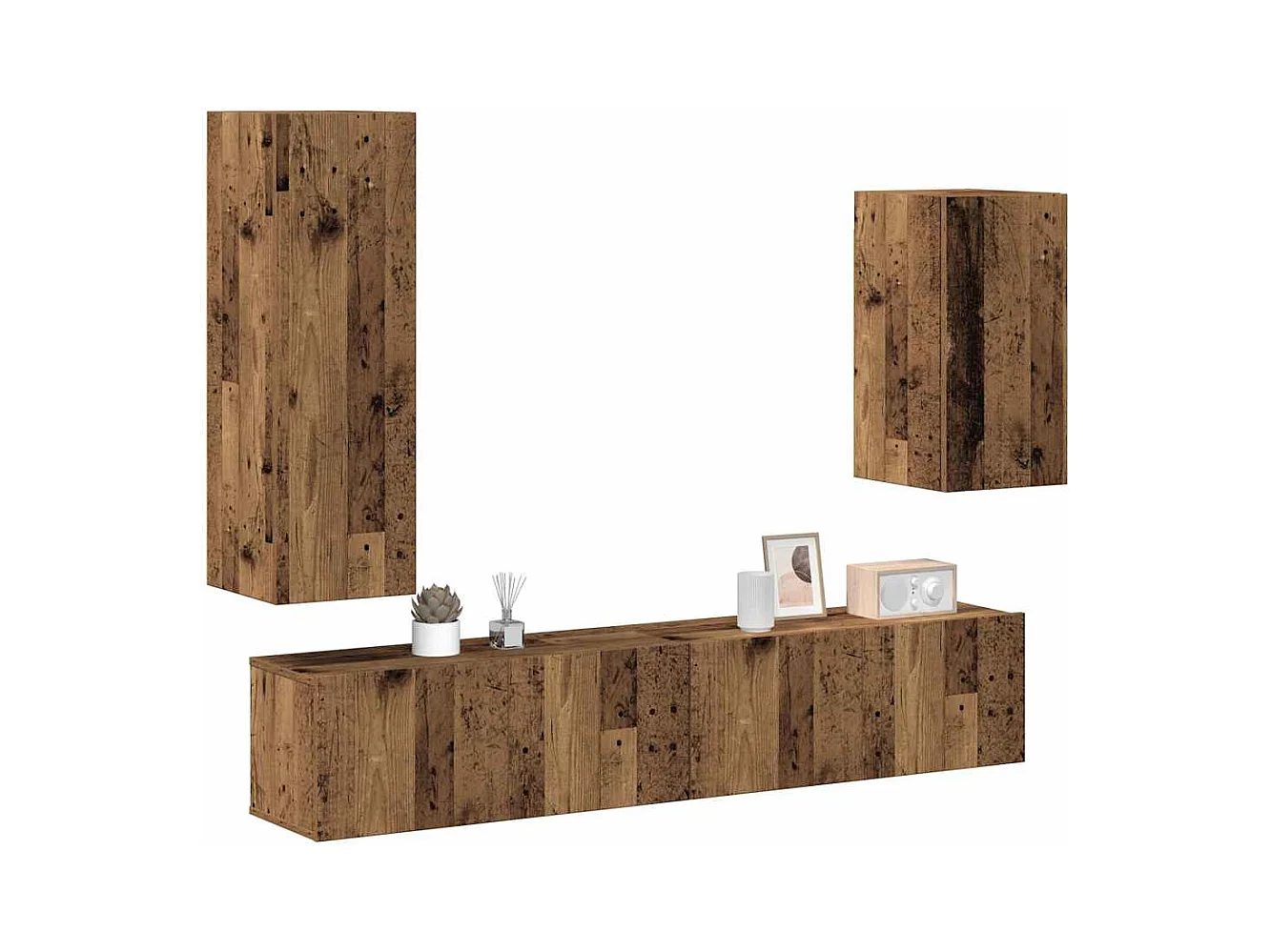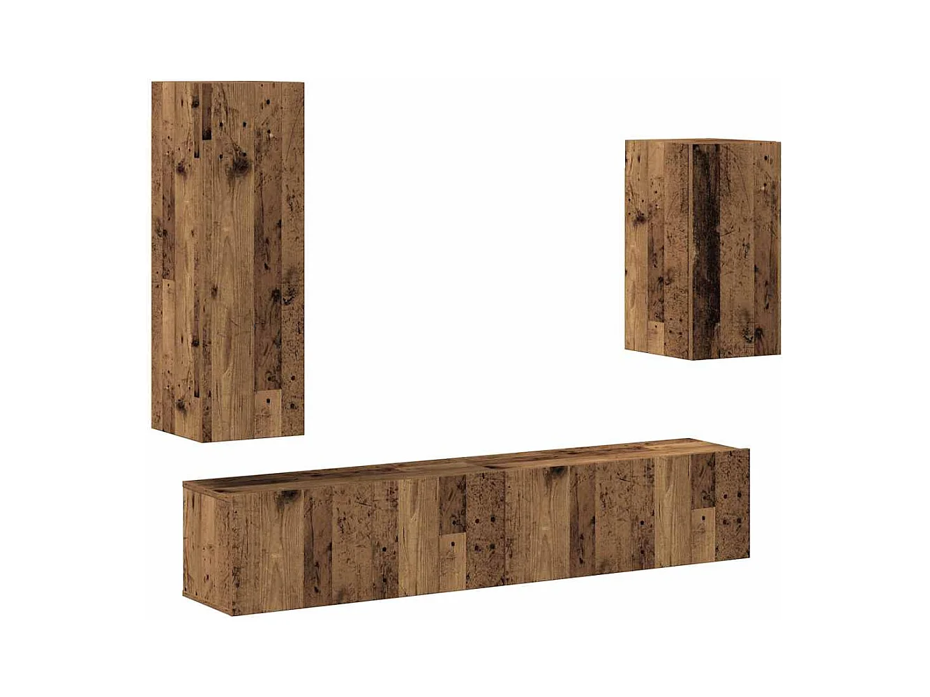 5-delig Tv-meubelset | Tv-Bank | TV-kast wandmontage bewerkt hout oud houtkleurig