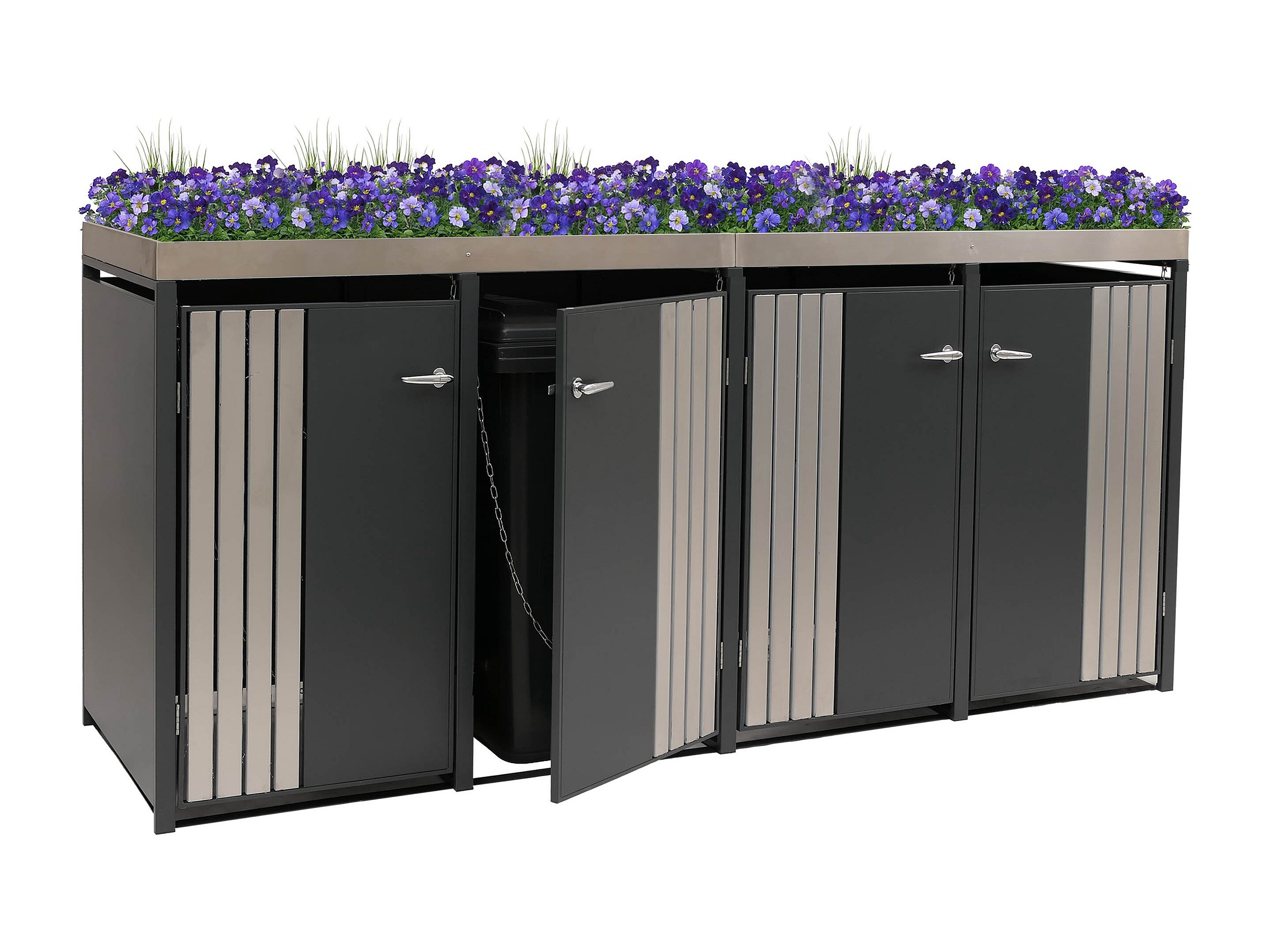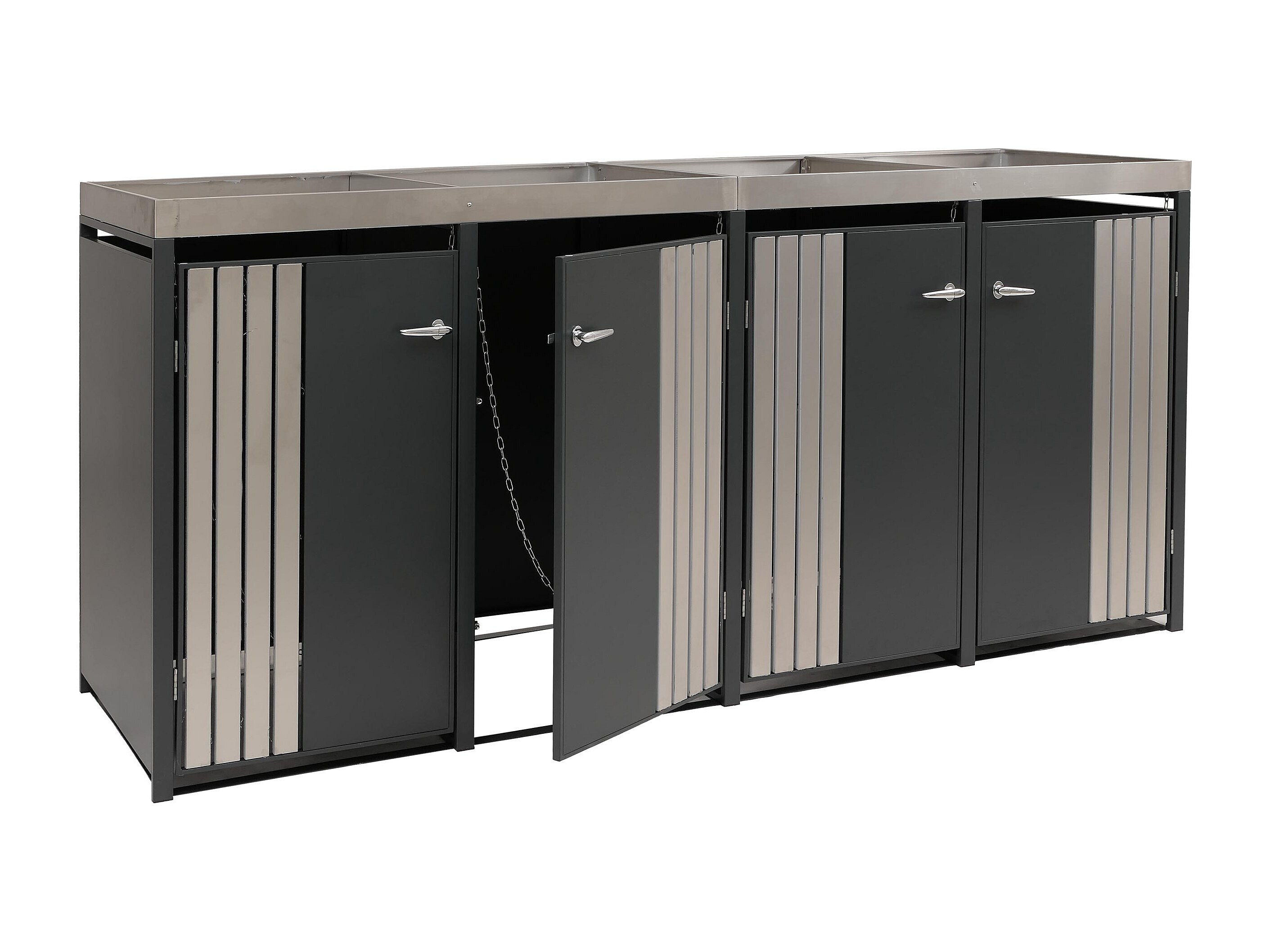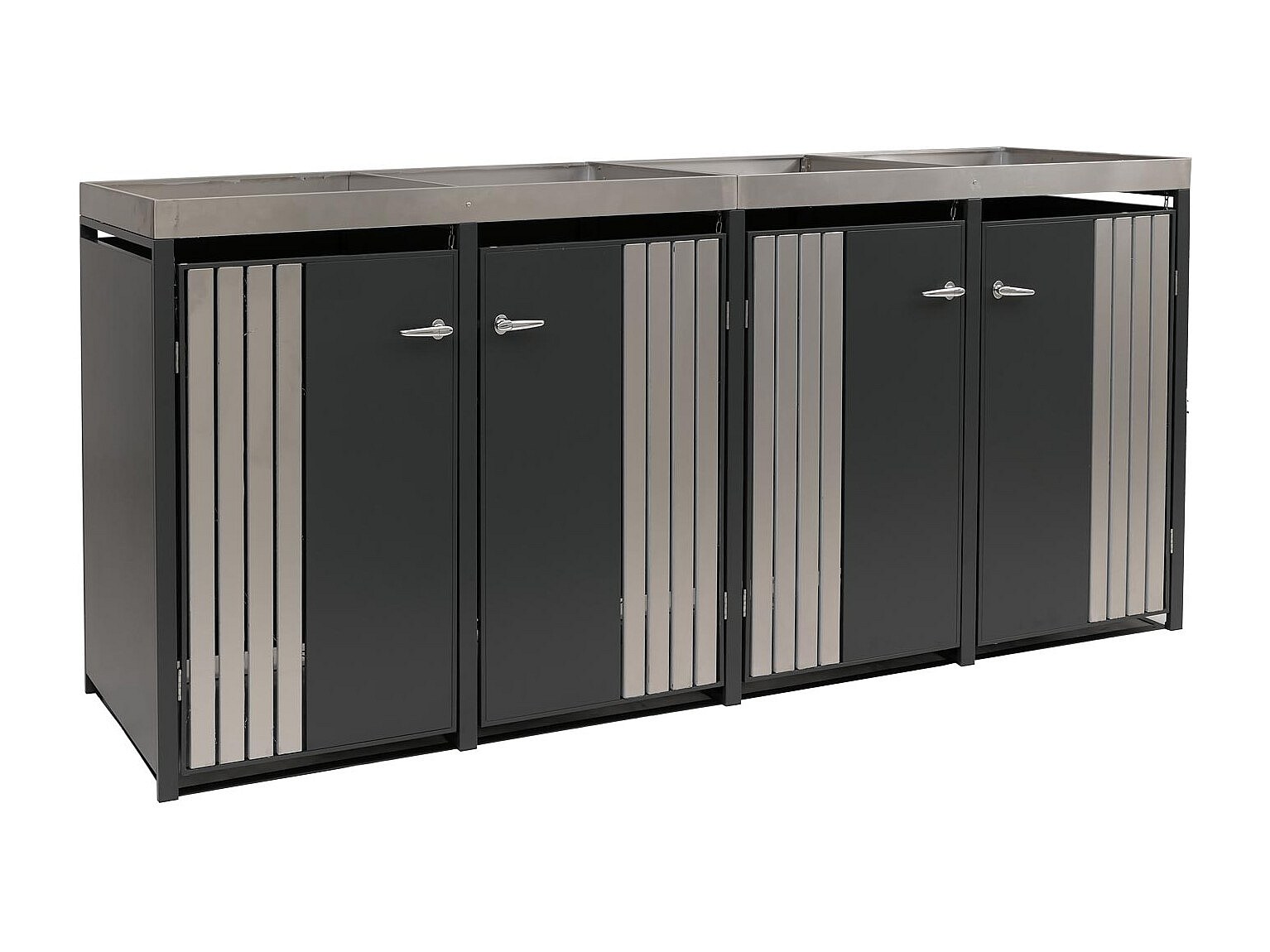 4-delige afvalcontainerbehuizing MCW-O67, antraciet roestvrij staal