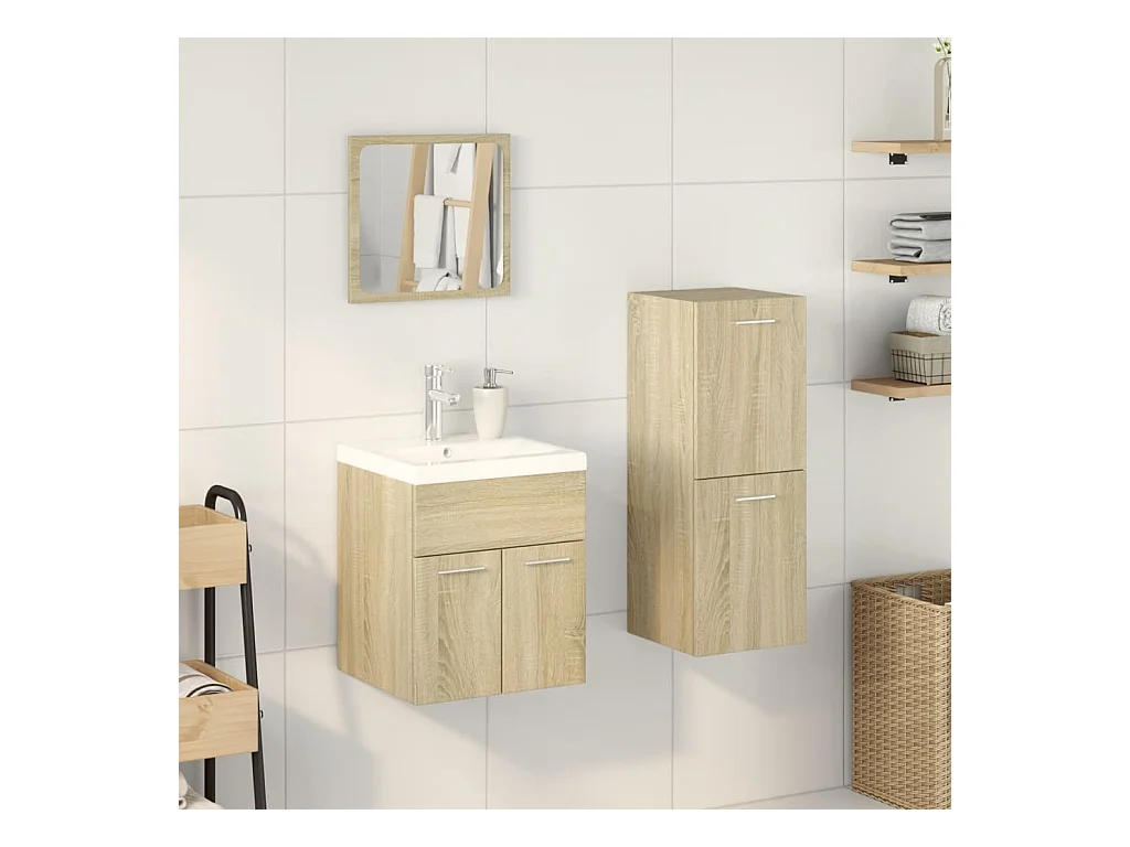 Badkamermeubelset Wandmontage 4 stuks Antiek Hout