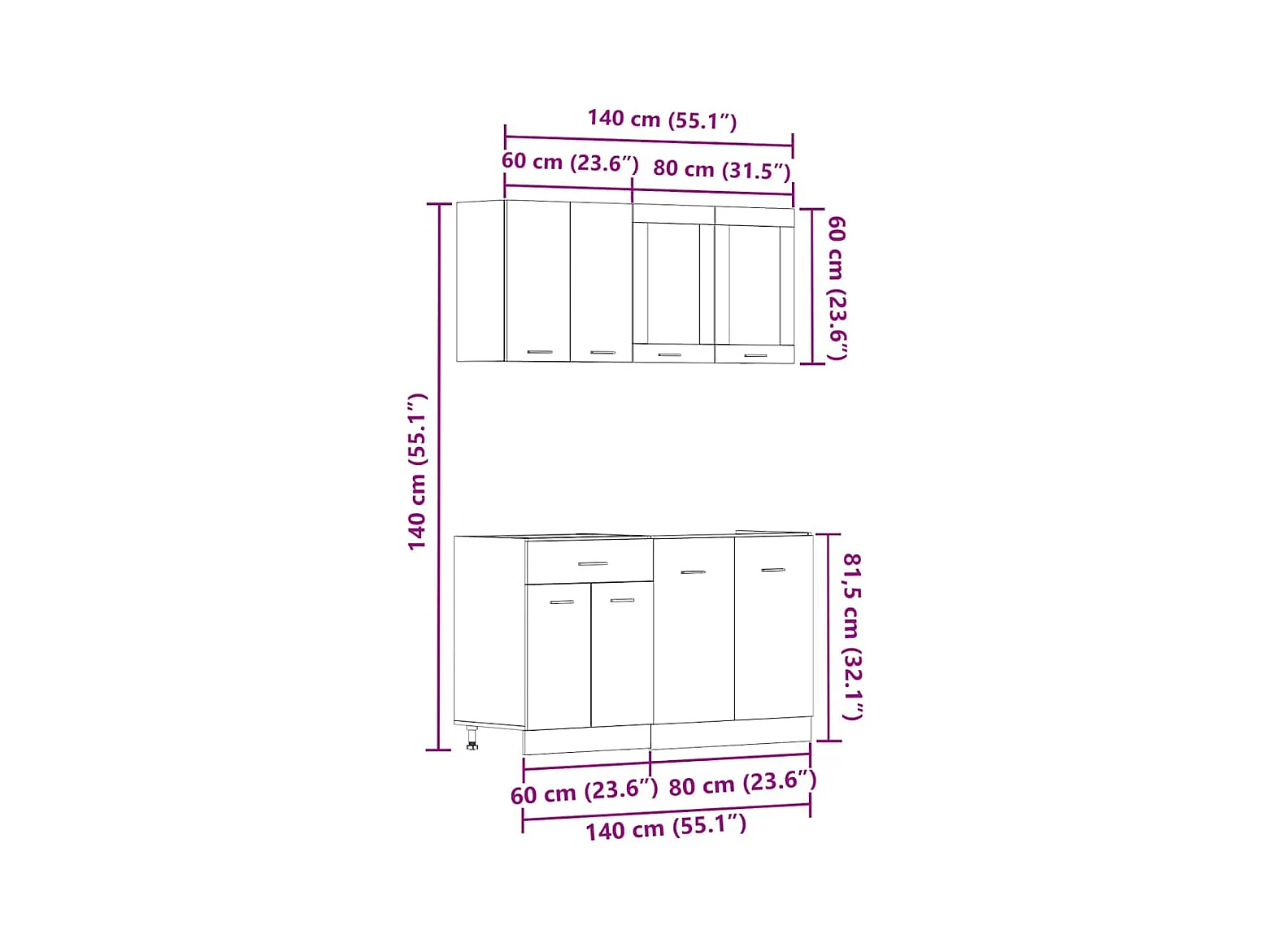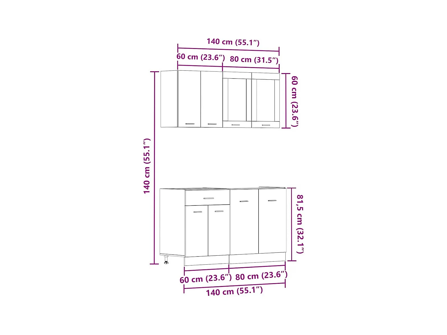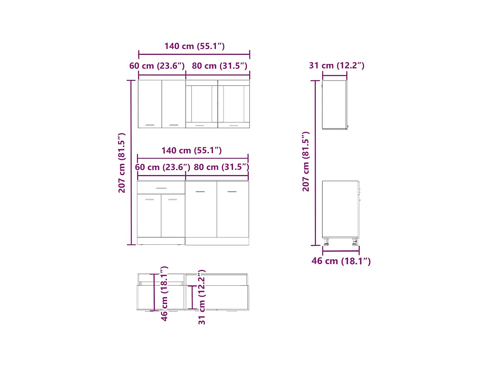 7-delige Keukenkastenset Lucca bewerkt hout sonoma eikenkleur
