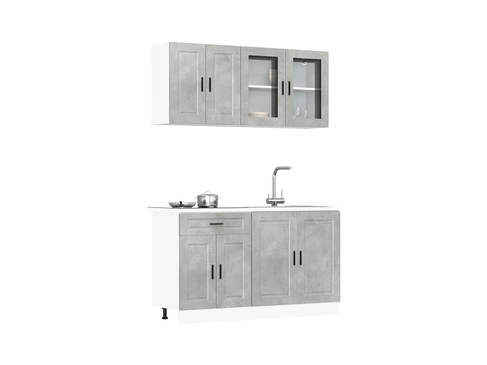 4-delige Keukenkastenset Porto bewerkt hout betongrijs