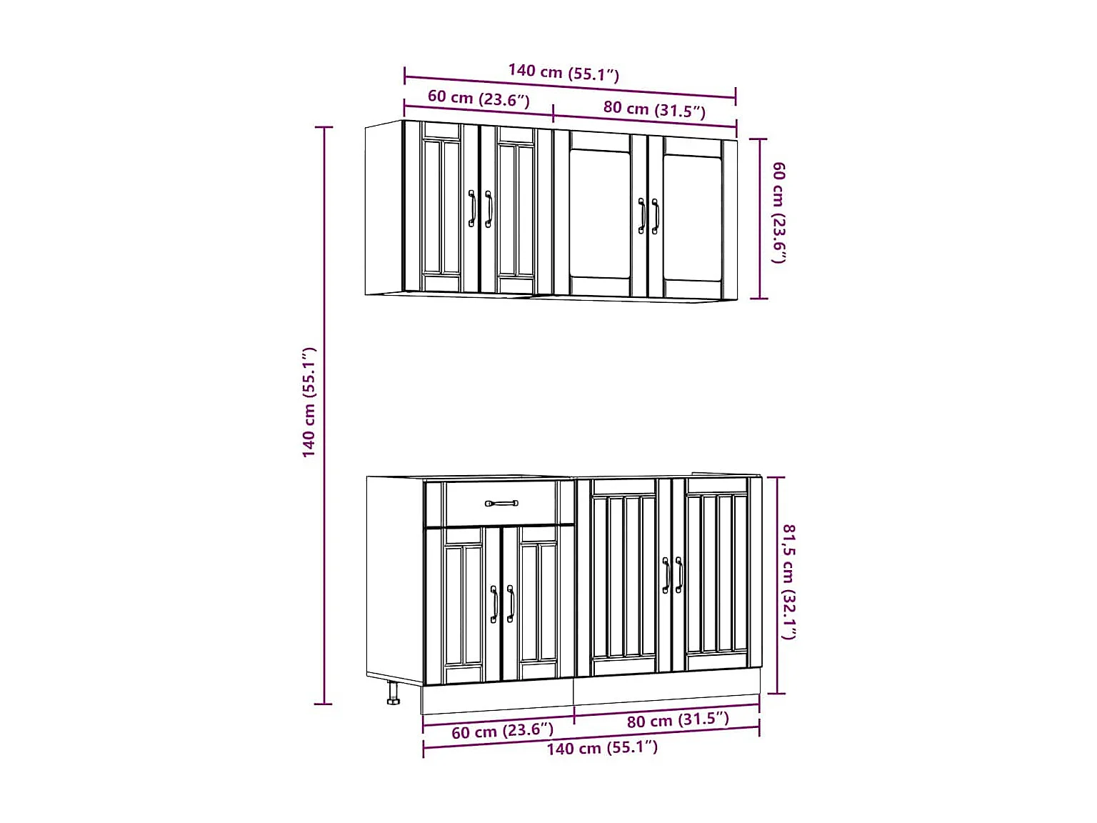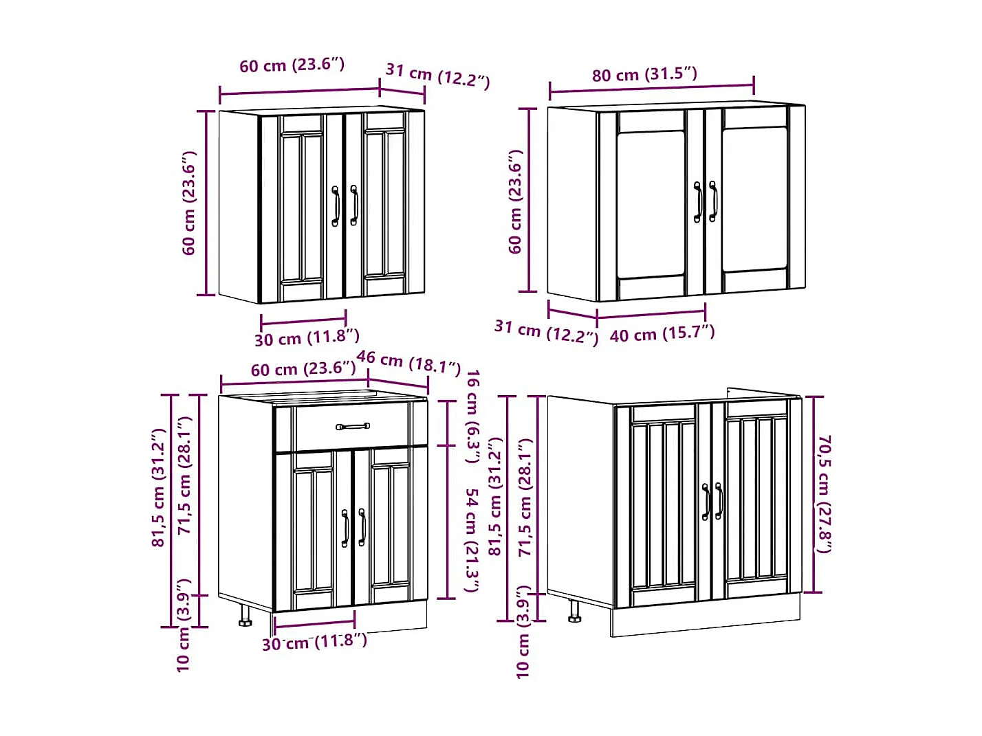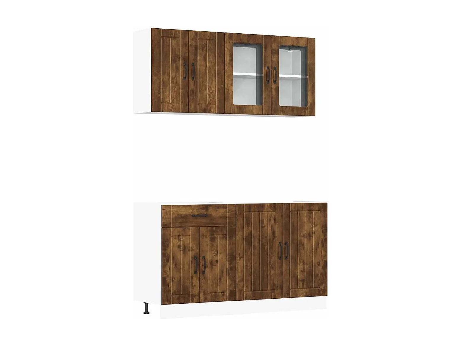 4-delige Keukenkastenset Lucca bewerkt hout gerookt eiken