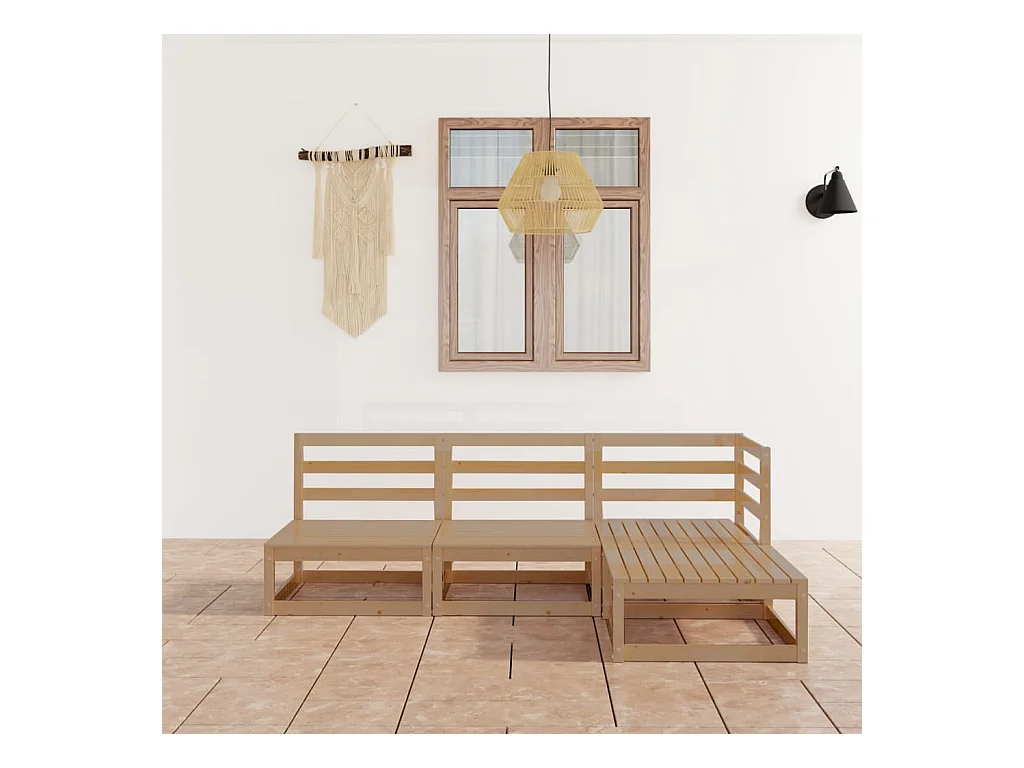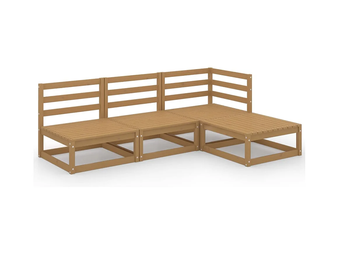 4-delige Loungeset massief grenenhout honingbruin