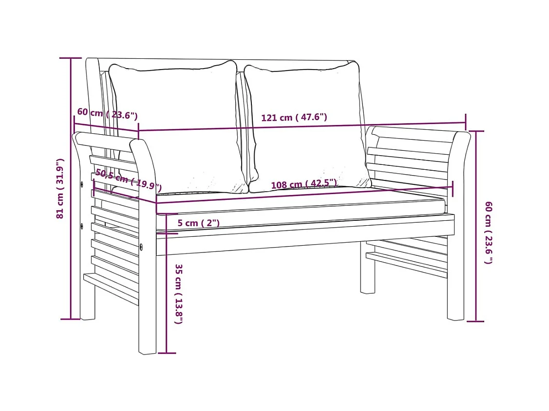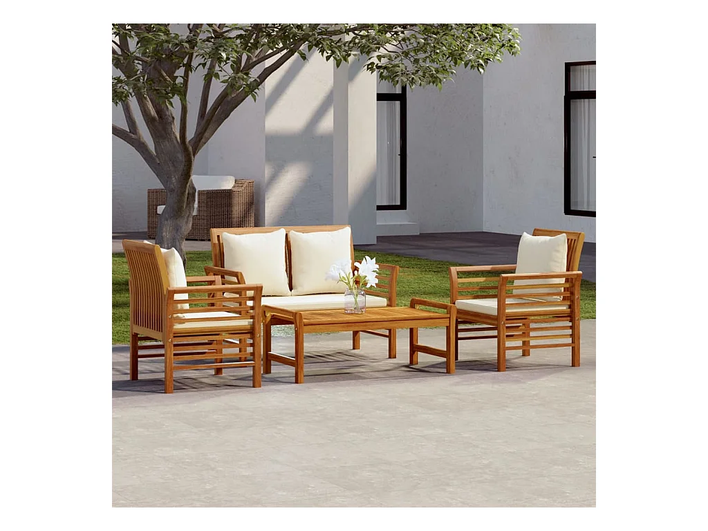 4-delige Loungeset met kussens massief acaciahout