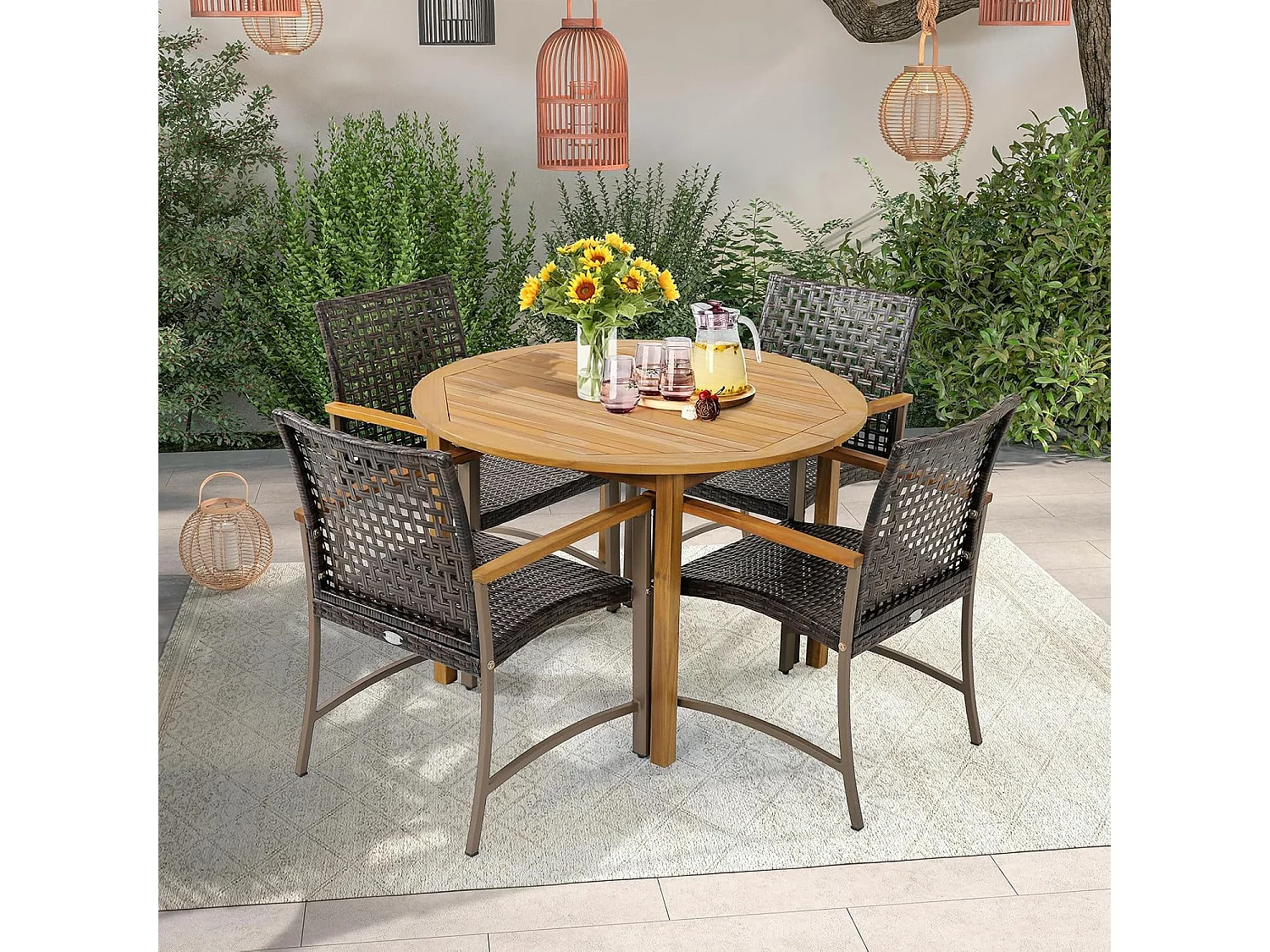 4-delige rotan tuinstoelset, terras, eetstoelen met armleuningen van acaciahout en metalen frame, rotan stoelen voor balkon, veranda, zwembad
