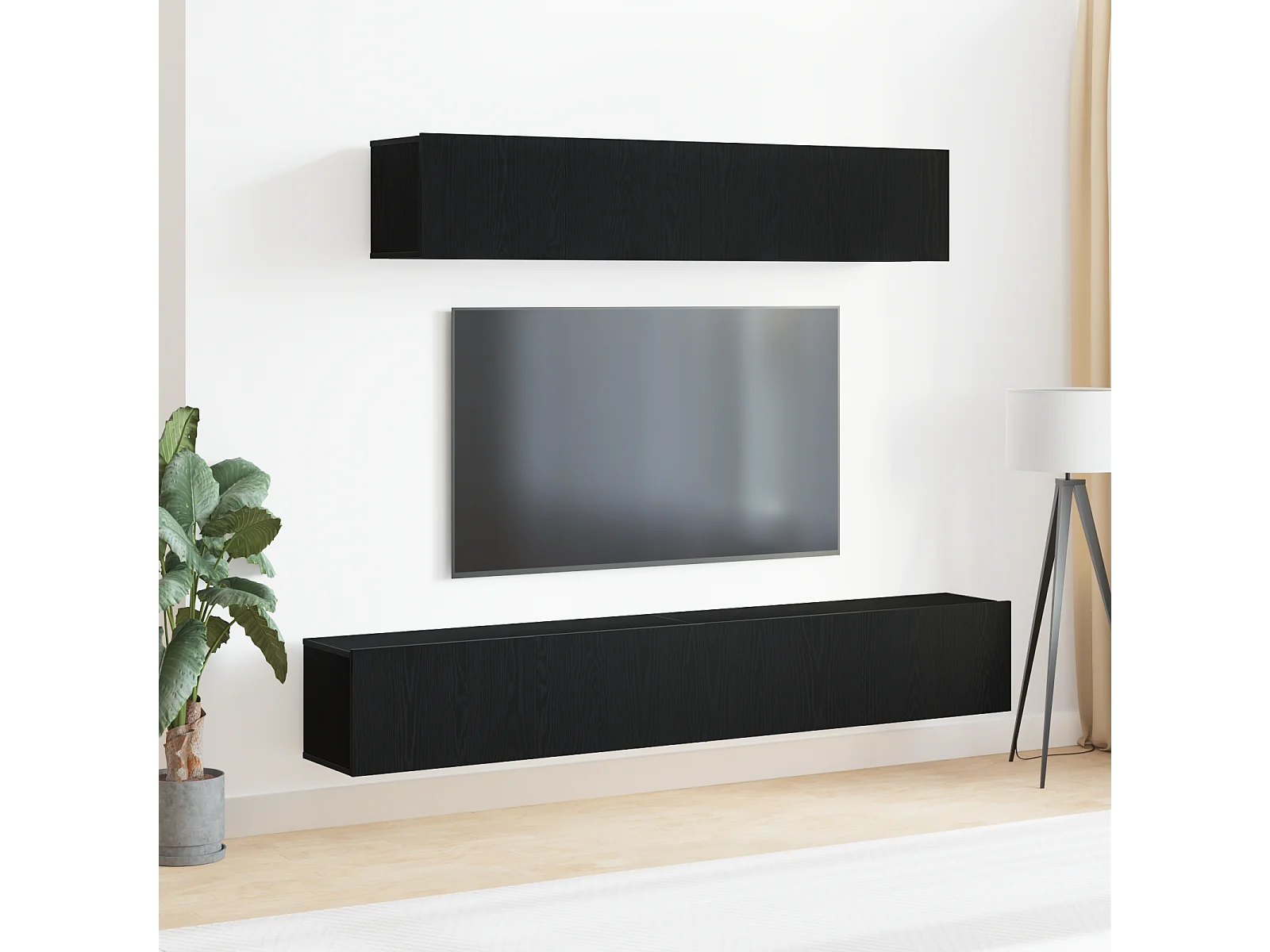 4-delige TV Meubel | Tv-Bank | TV-kast set in zwart gelaagd hout
