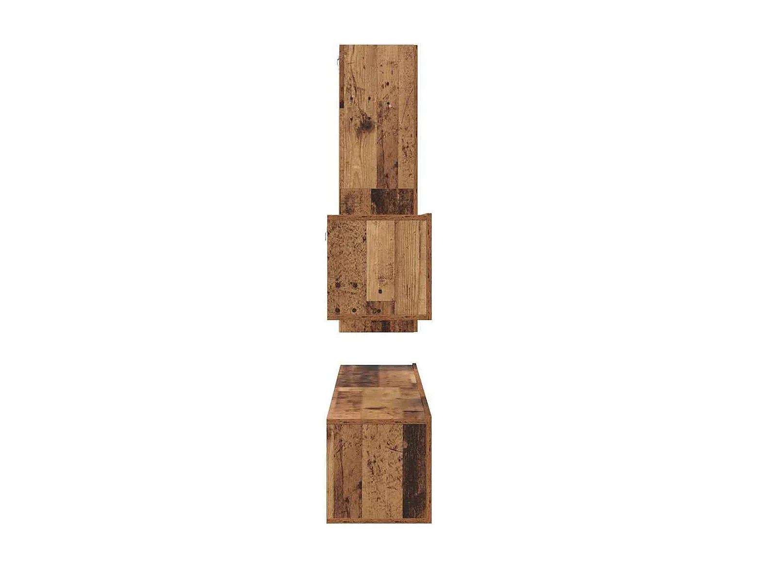 7-delige tv-meubelset voor aan de muur, verouderd hout, bewerkt hout