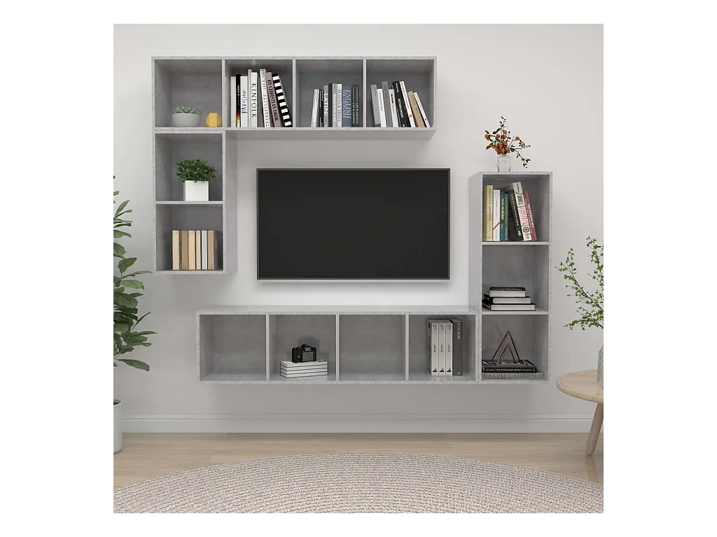 Tv-wandmeubelen | Tv-Banken | TV-kasten 4 st bewerkt hout betongrijs