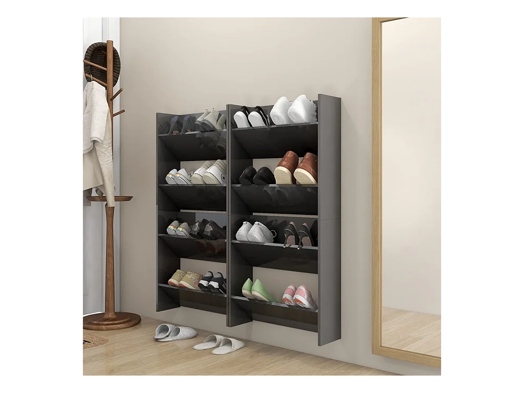 Wandgemonteerde schoenenkast, hoogglans grijs, bewerkt hout
