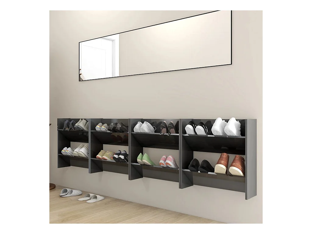 4-delige wandschoenenkast, glanzend grijs, 60x18x60 cm