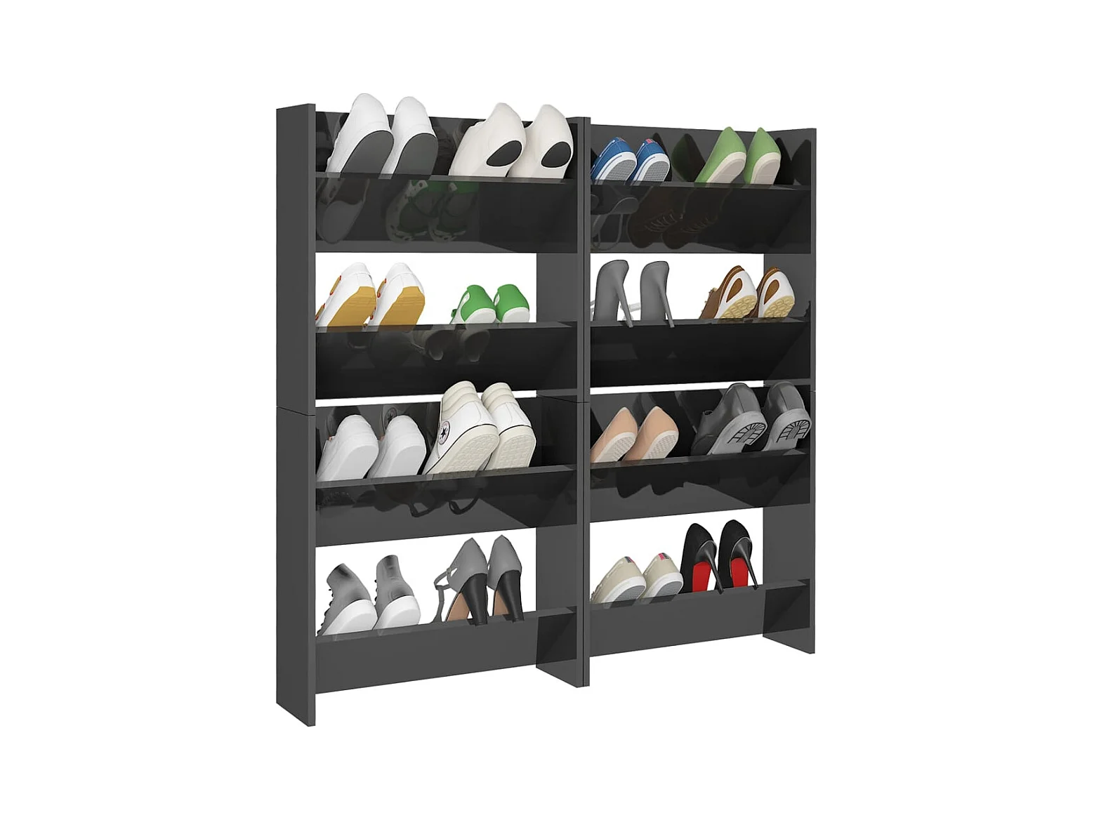 Wandkast voor schoenen 2 stuks glanzend grijs 60x18x60 cm