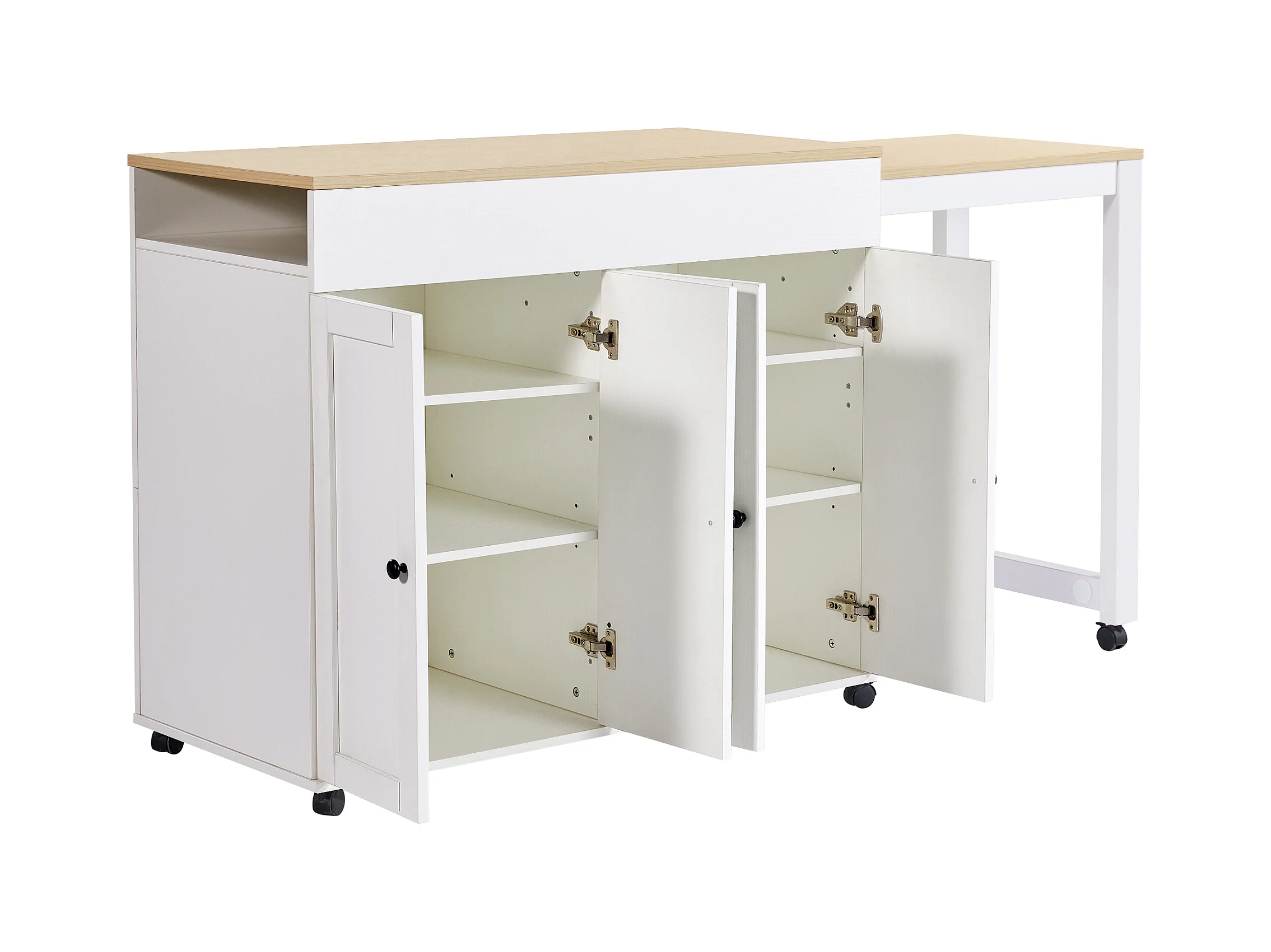 4-deurs bartafel Houten keukeneiland met uitschuifbaar blad (118-180)x50x94 cm - wit