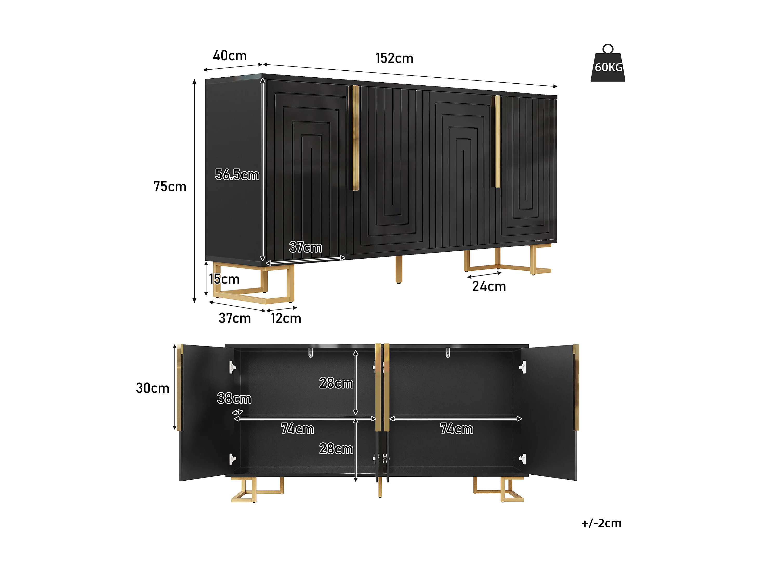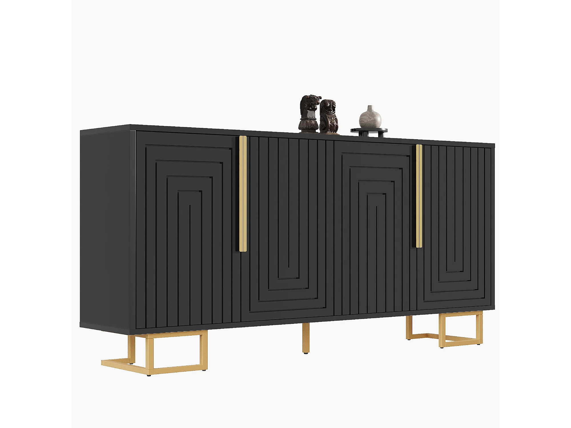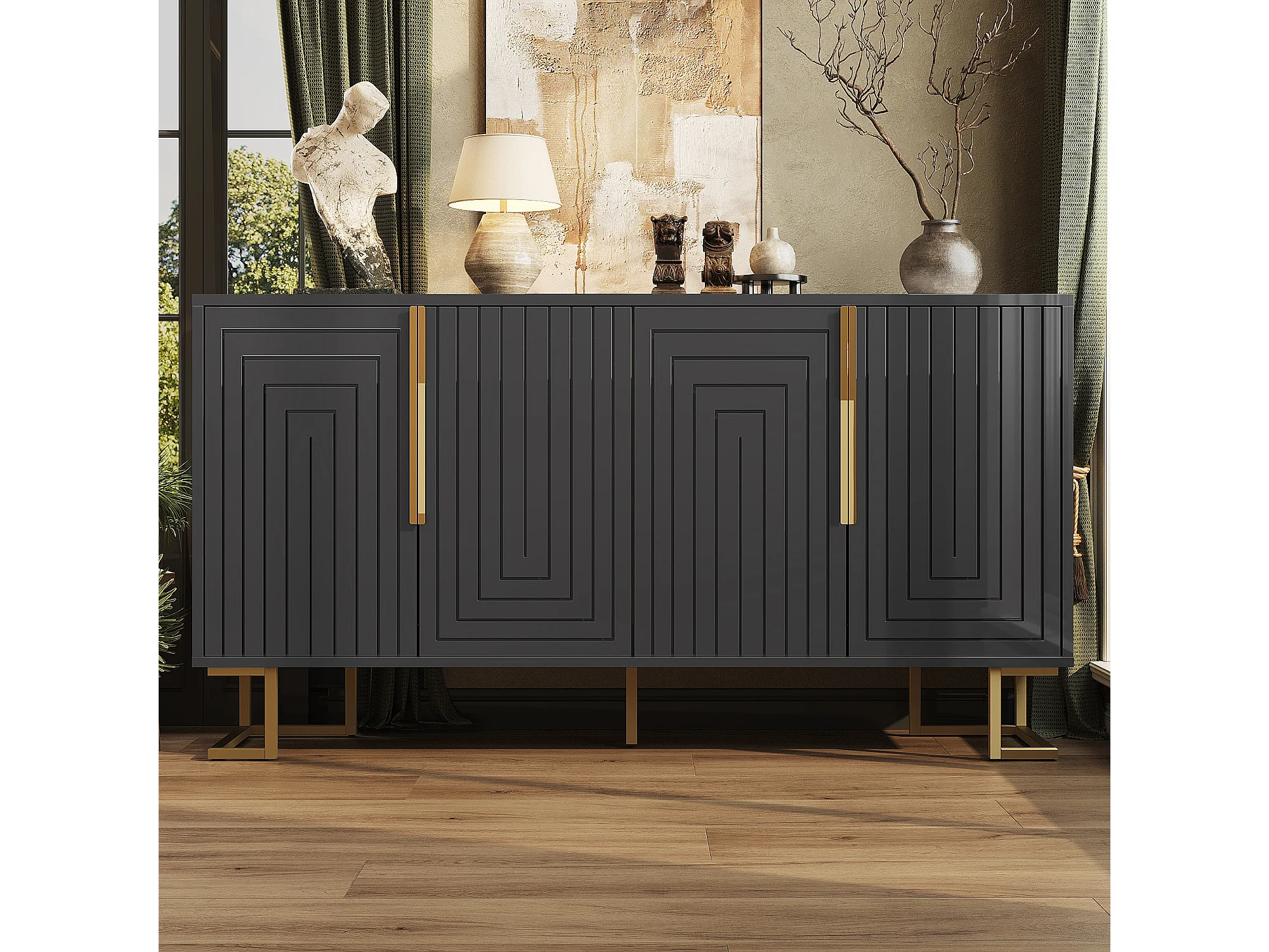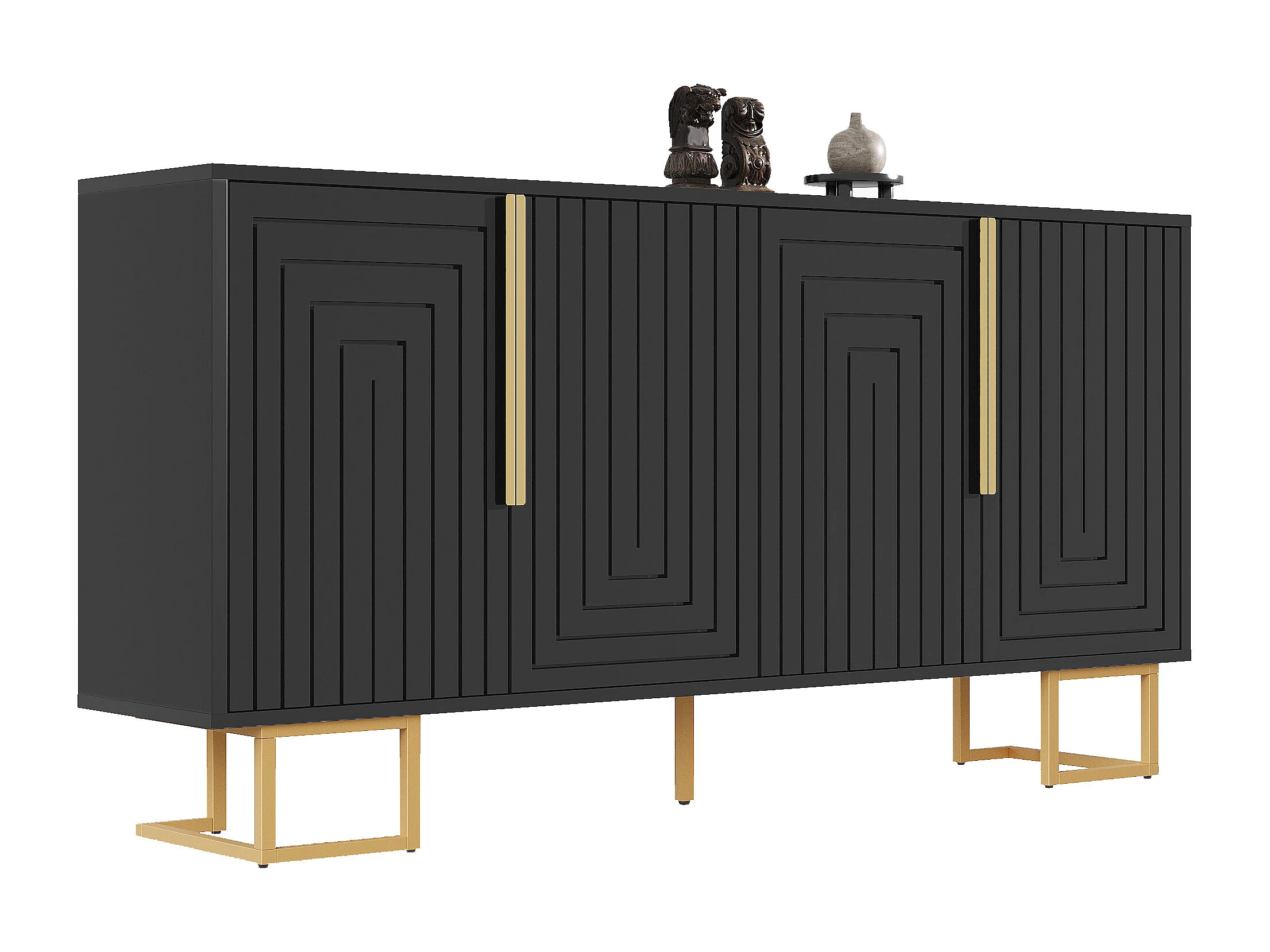 4-deurs dressoir - Dressoir met gouden handgrepen en poten - zwart - voor eetkamer