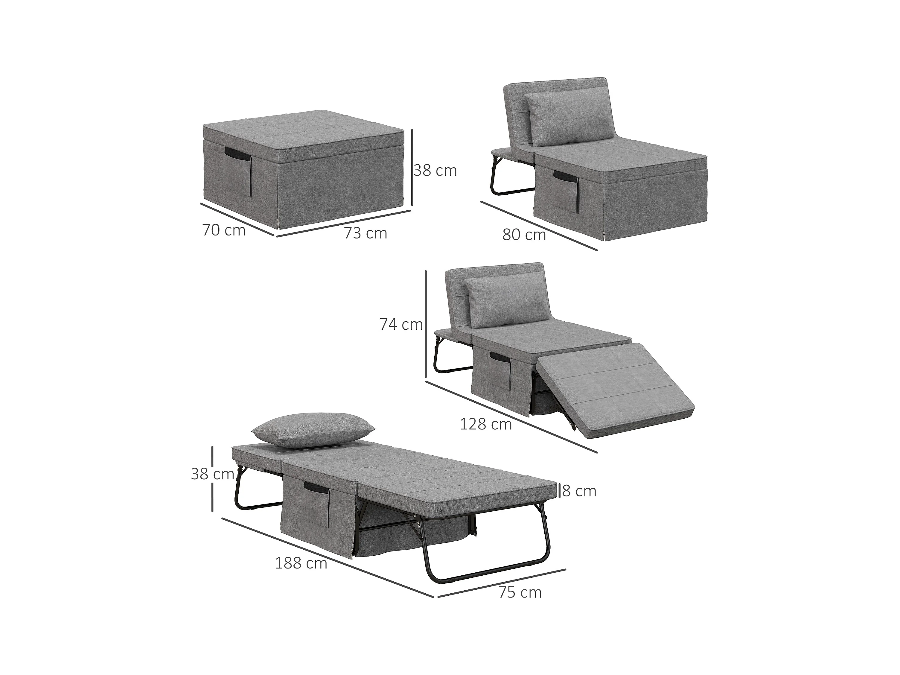 4-in-1 slaapbank, matras van 8 cm, 5-voudig verstelbaar, staal, grijs (188x75x38cm)