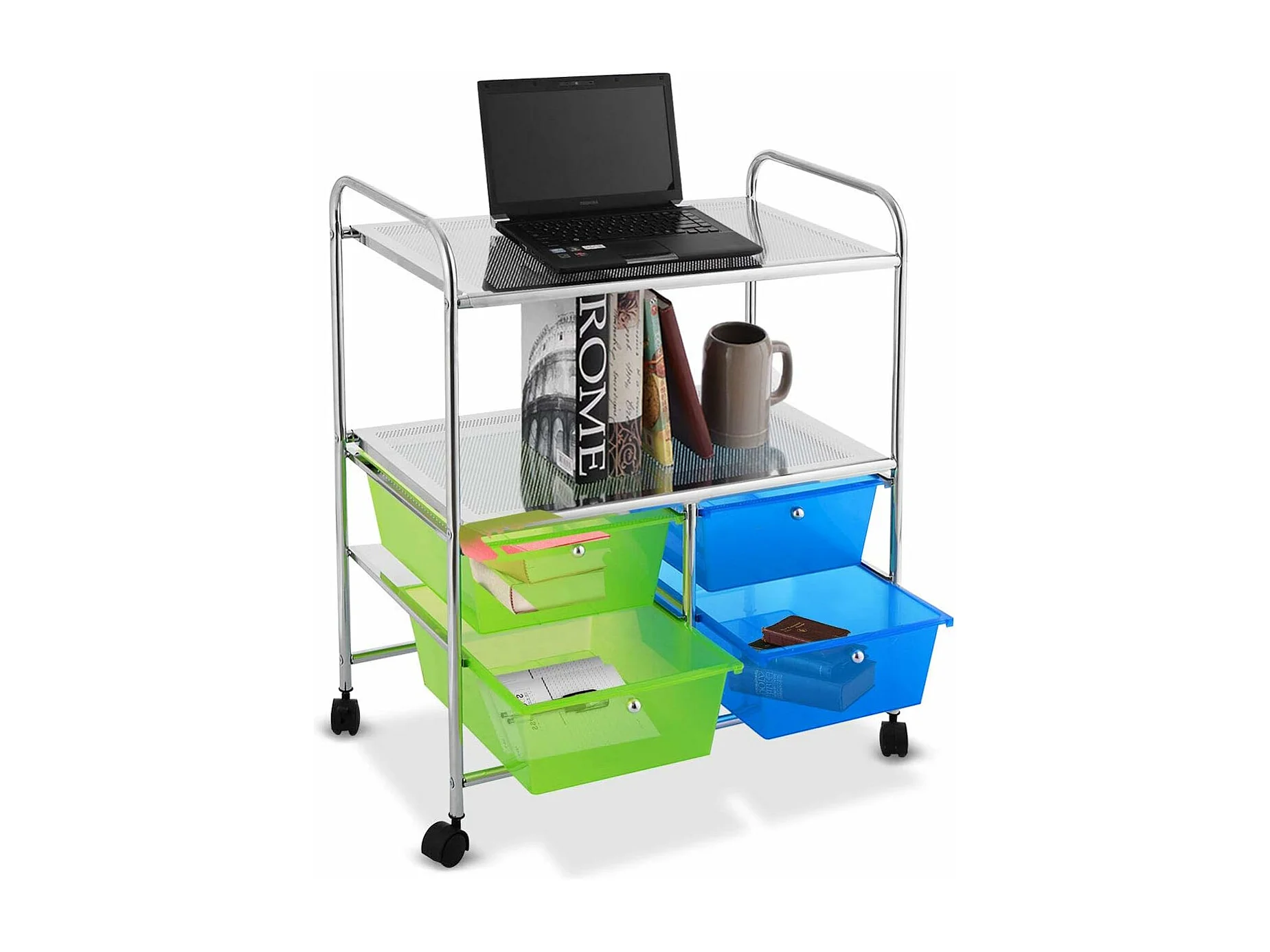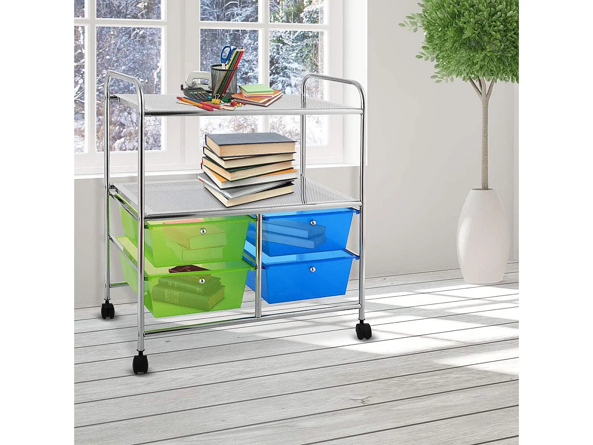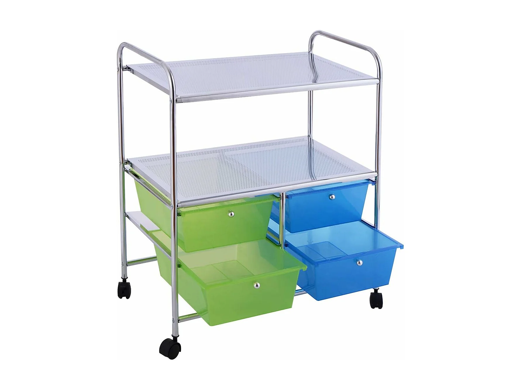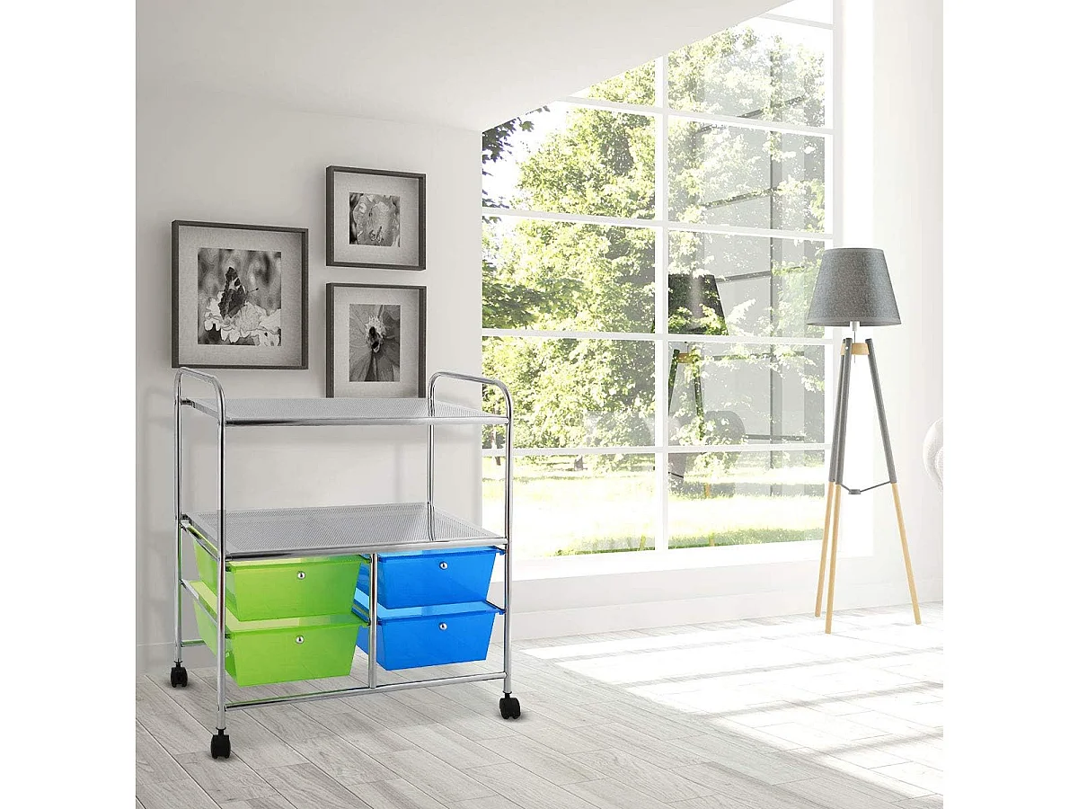 4 kleurrijke lades rollende opslagkar metalen rek plank thuiskantoor 2 plankenTI76292