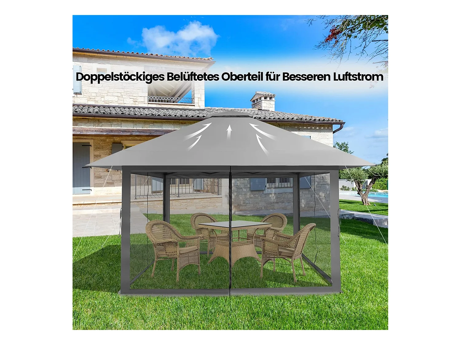4 x 4 m paviljoen, tuinpaviljoen met zijwanden van gaas, uv-bescherming 50+, pop-up vouwpaviljoen, incl. draagtas met wieltjes (grijs) ZB33944