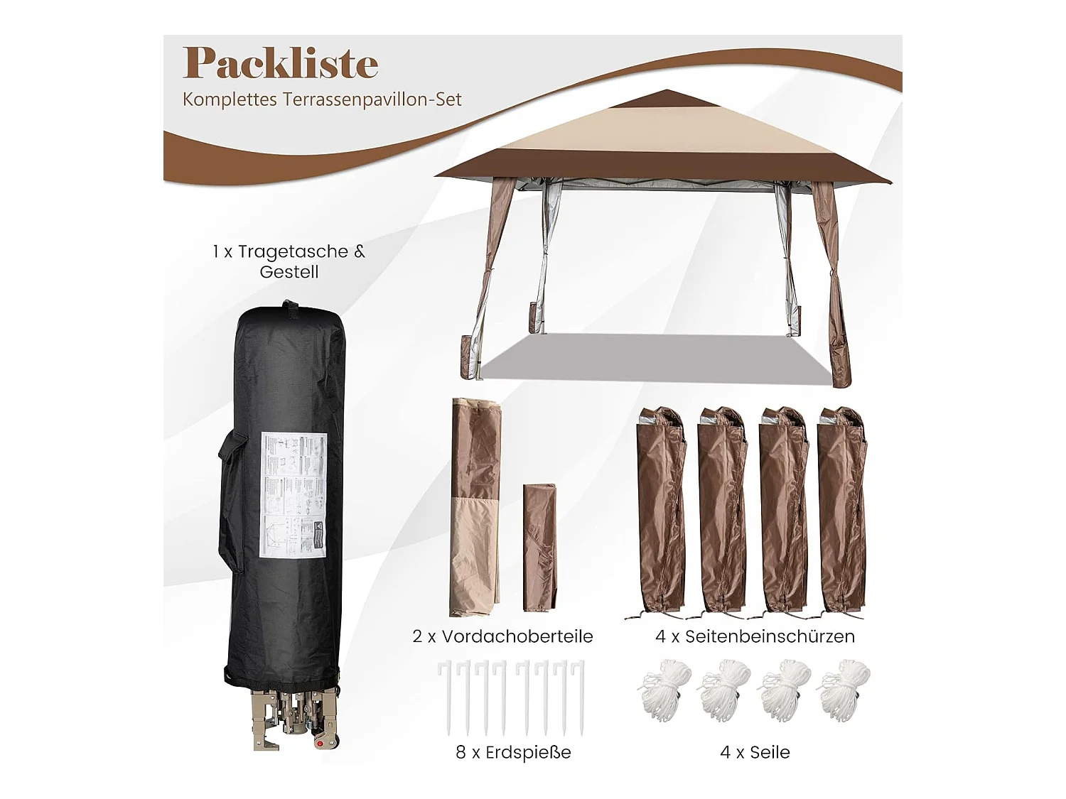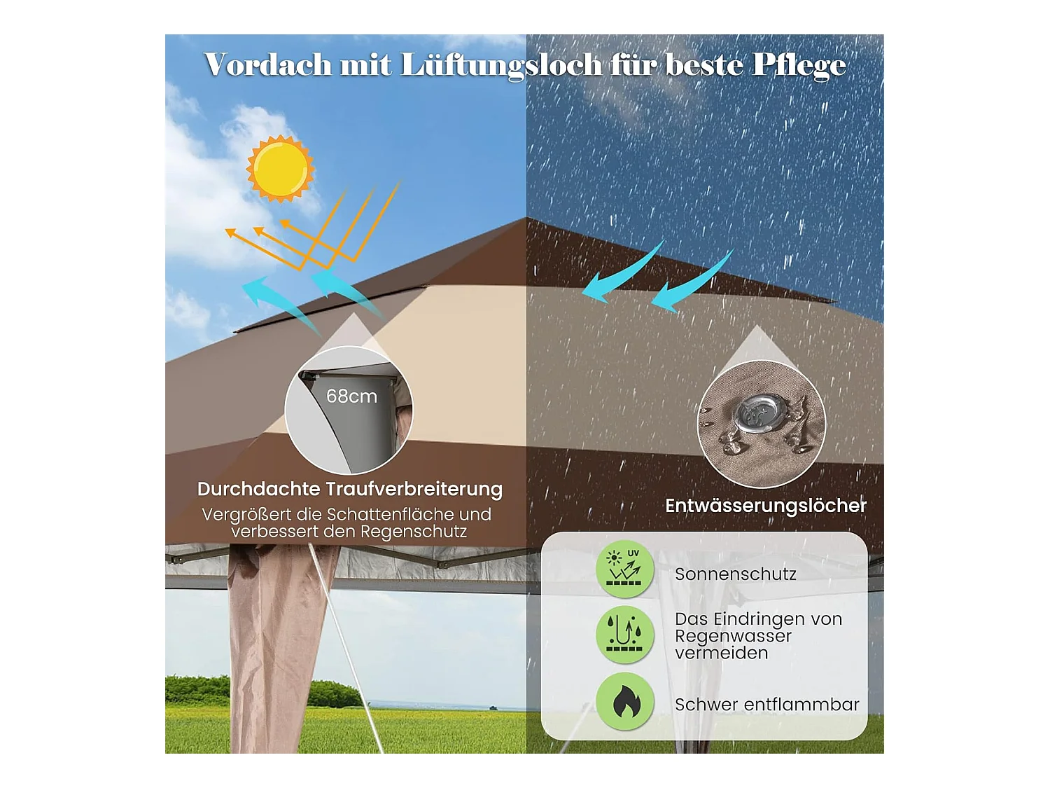Paviljoen met dubbel dak, waterdicht, stabiel, winterbestendig, uv-bescherming 50+, vouwpaviljoen, tuinpaviljoen met draagtas, op wieltjes, achtertuin ZB33811