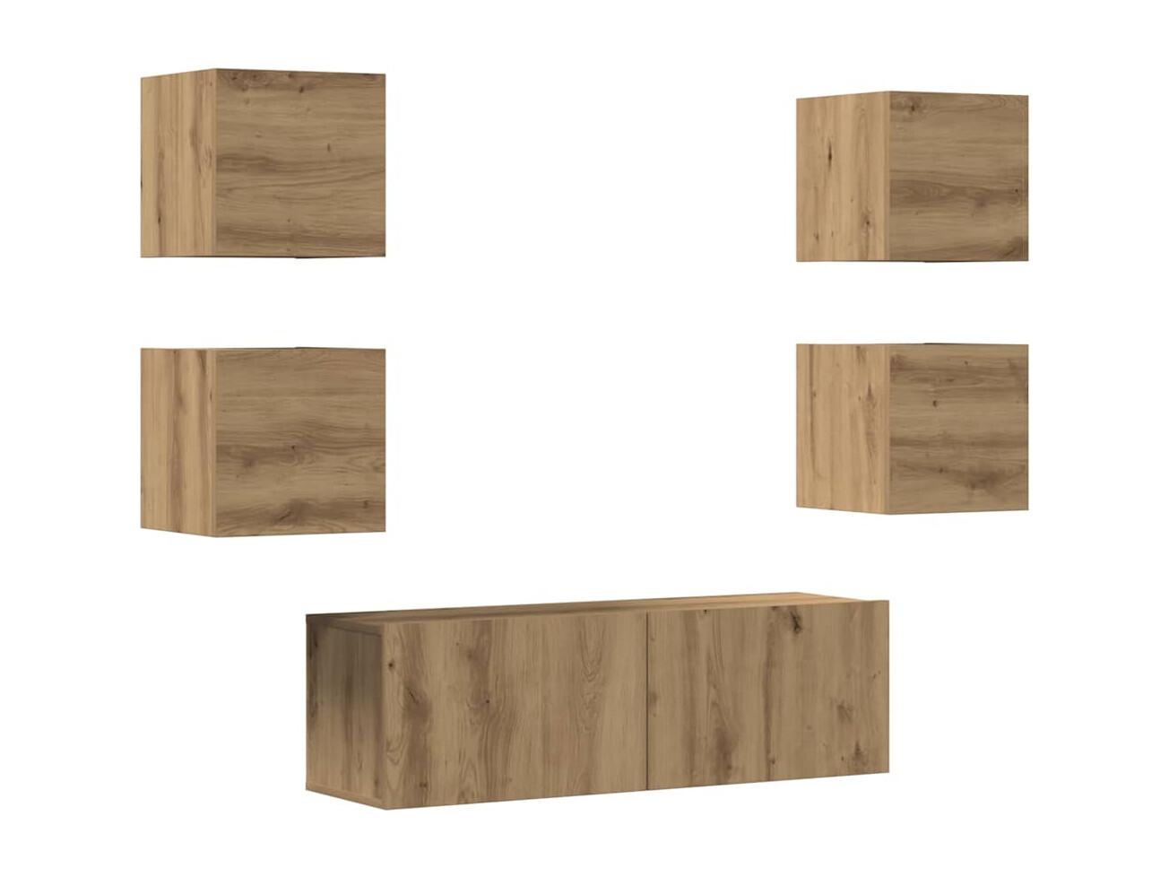 5-delig Tv-meubelset | Tv-Bank | TV-kast wandmontage bewerkt hout artisanaal eiken