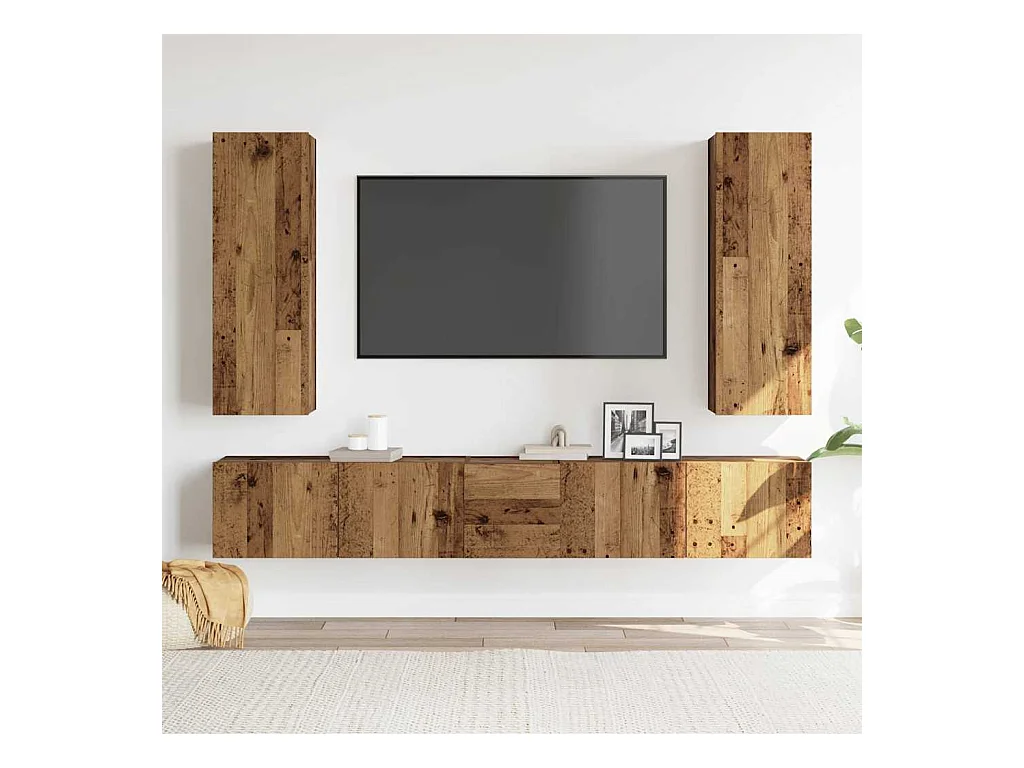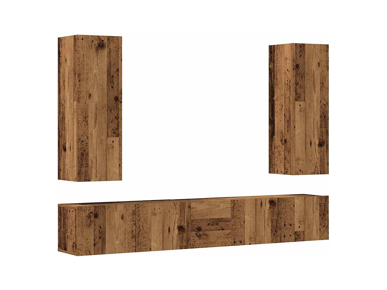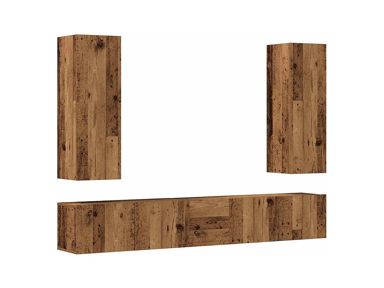 5-delig Tv-meubelset | Tv-Bank | TV-kast wandmontage bewerkt hout oud houtkleurig