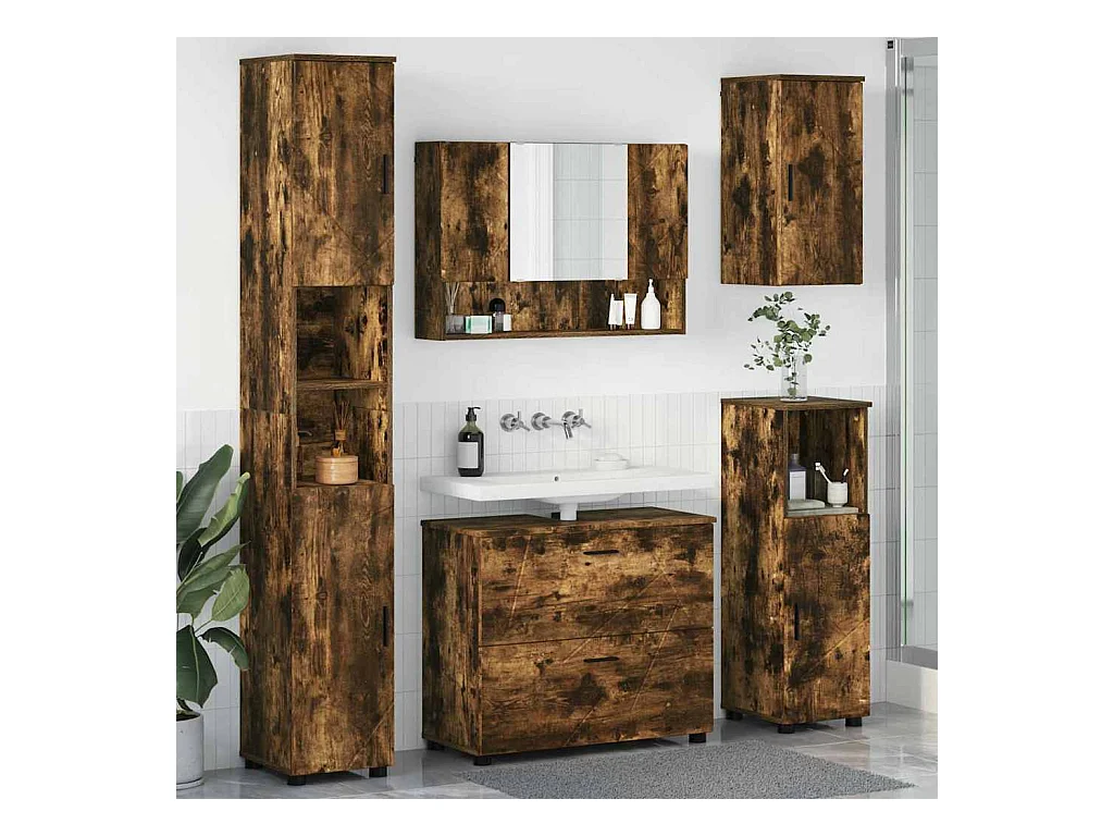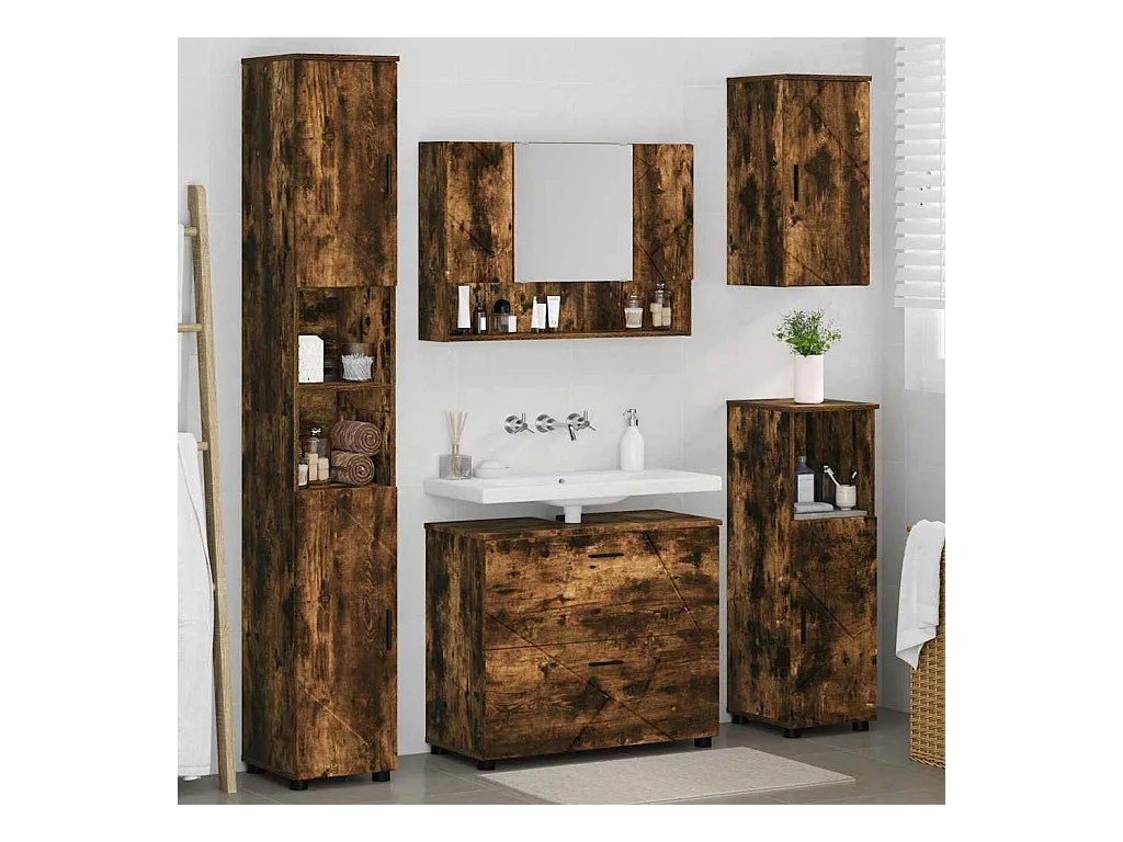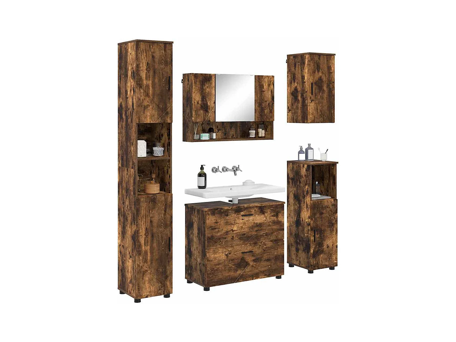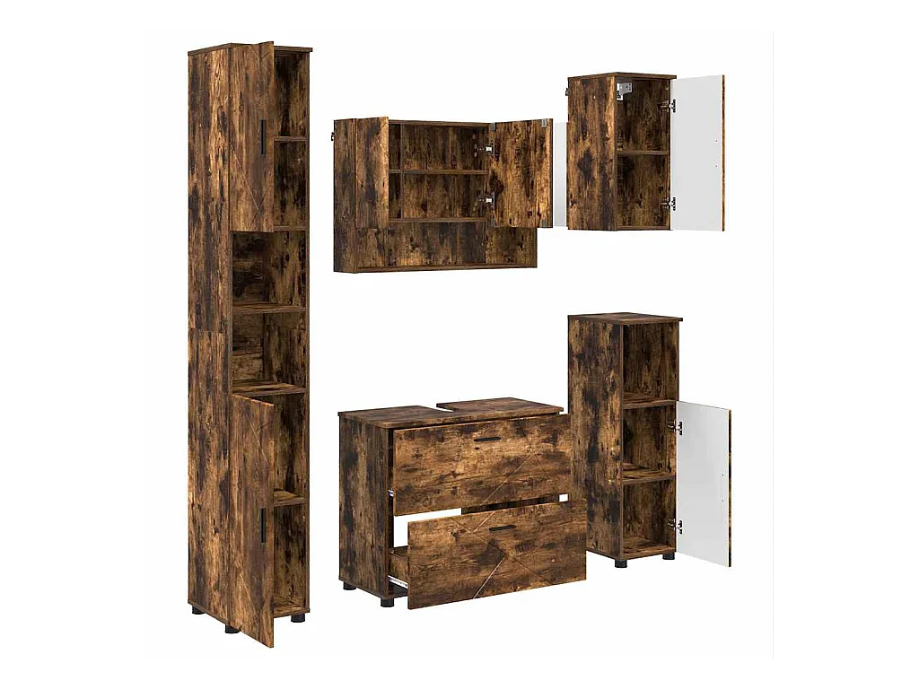 5-delige badkamermeubelset, handgemaakt eikenhout