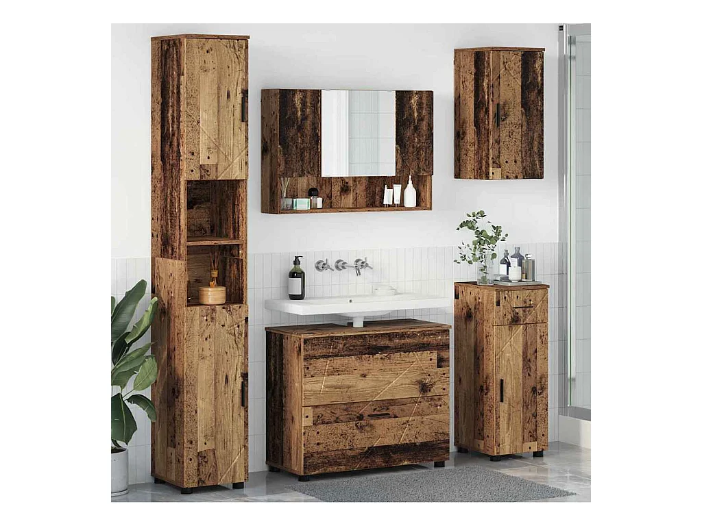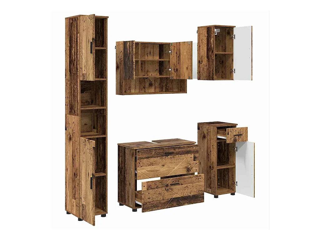 5-delige badkamermeubelset, handgemaakt eikenhout