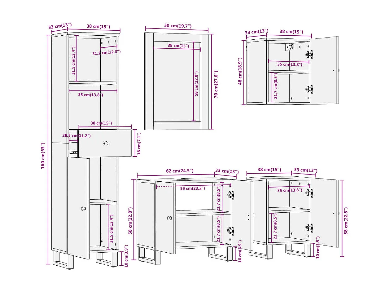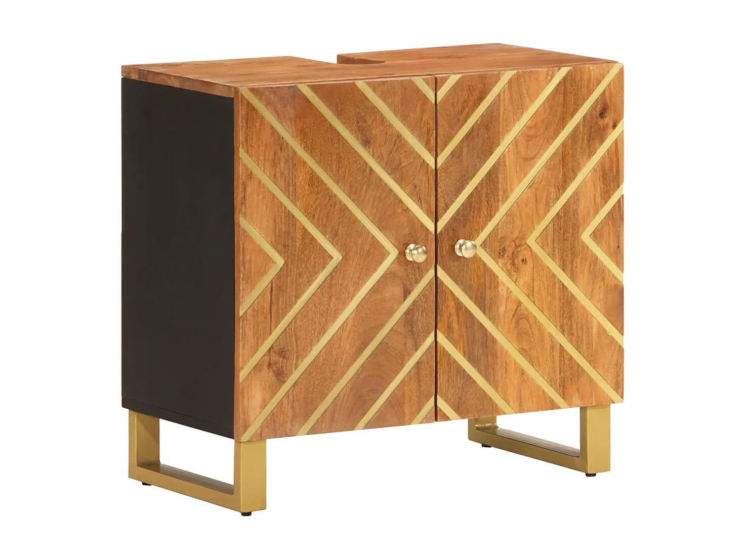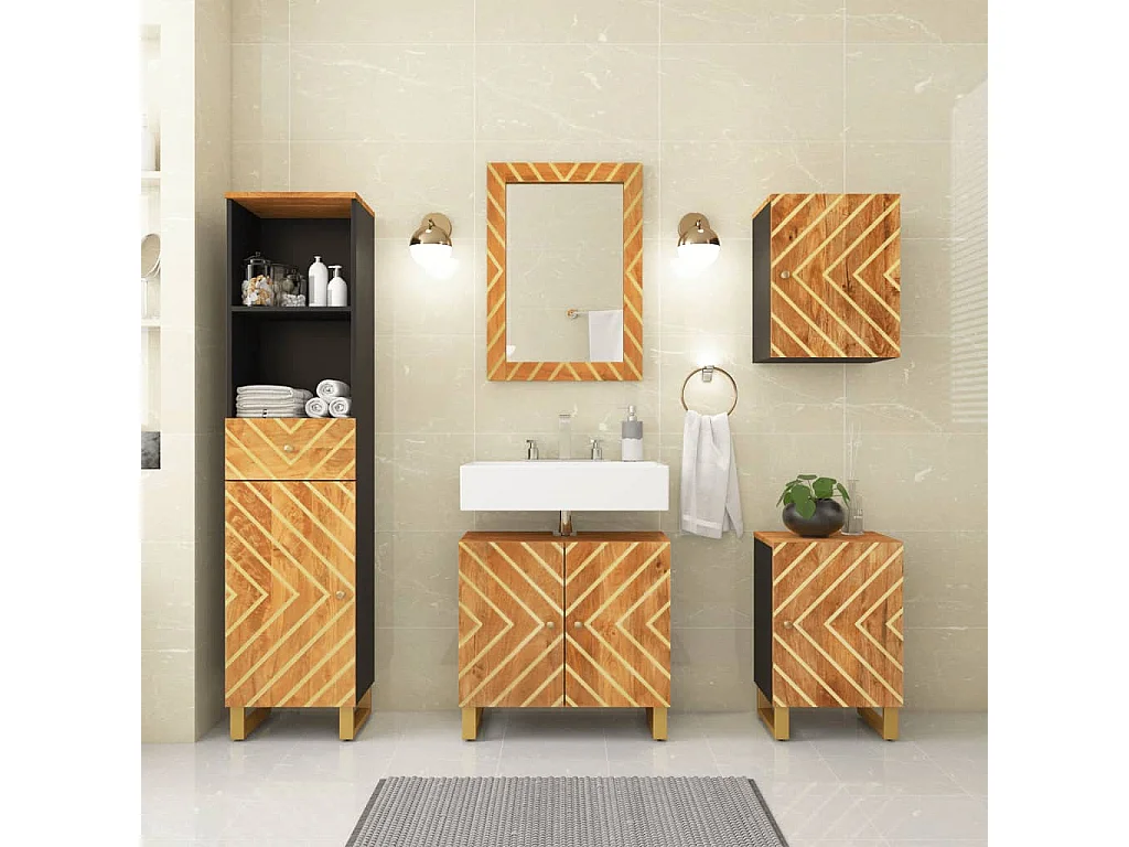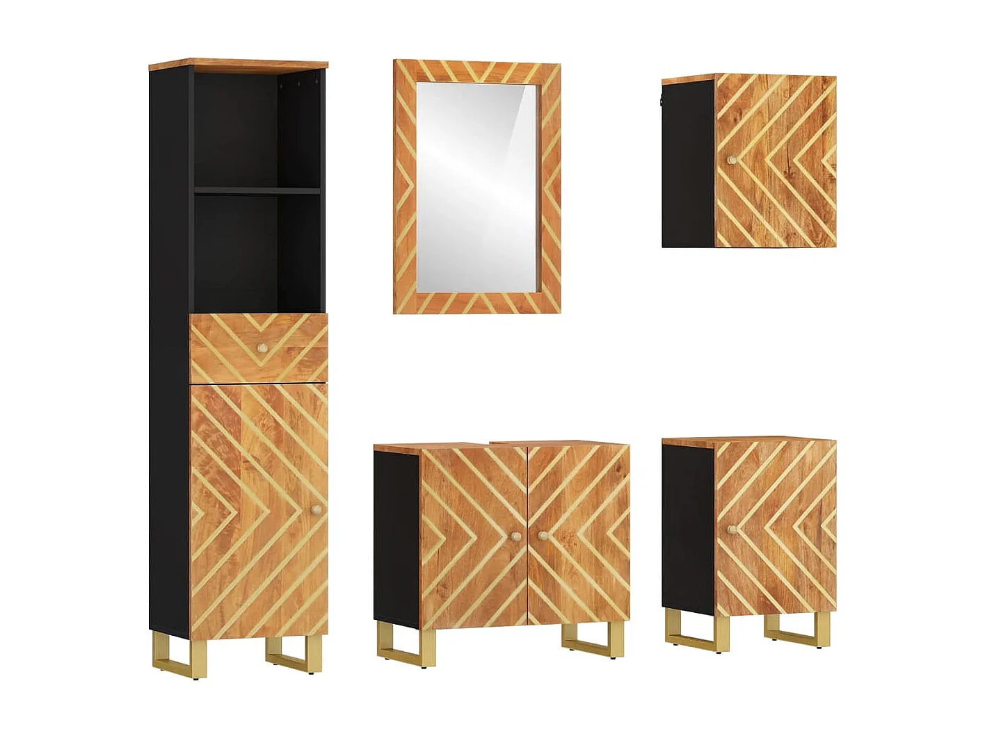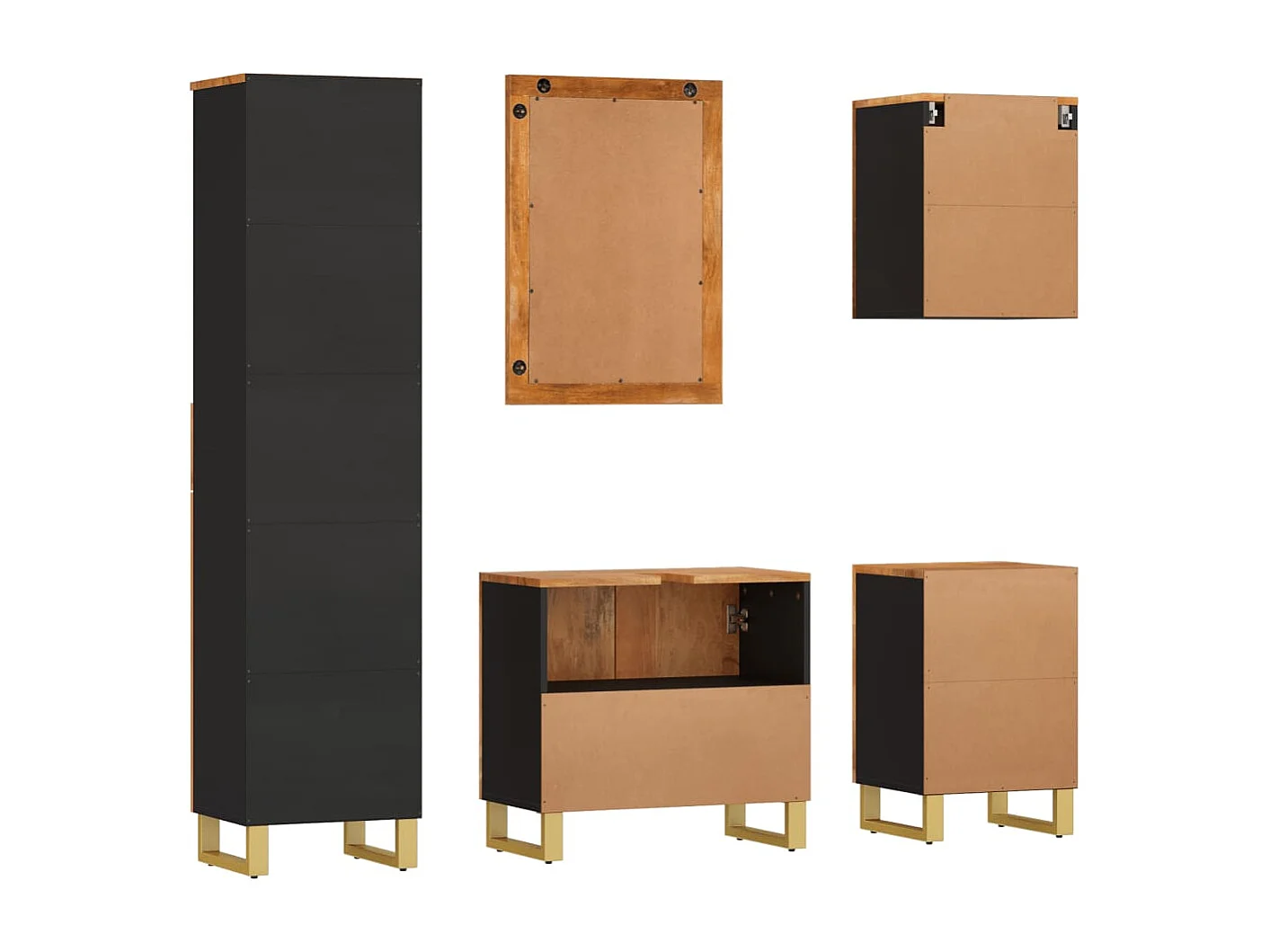 5-delige Badkamermeubelset massief mangohout bruin en zwart