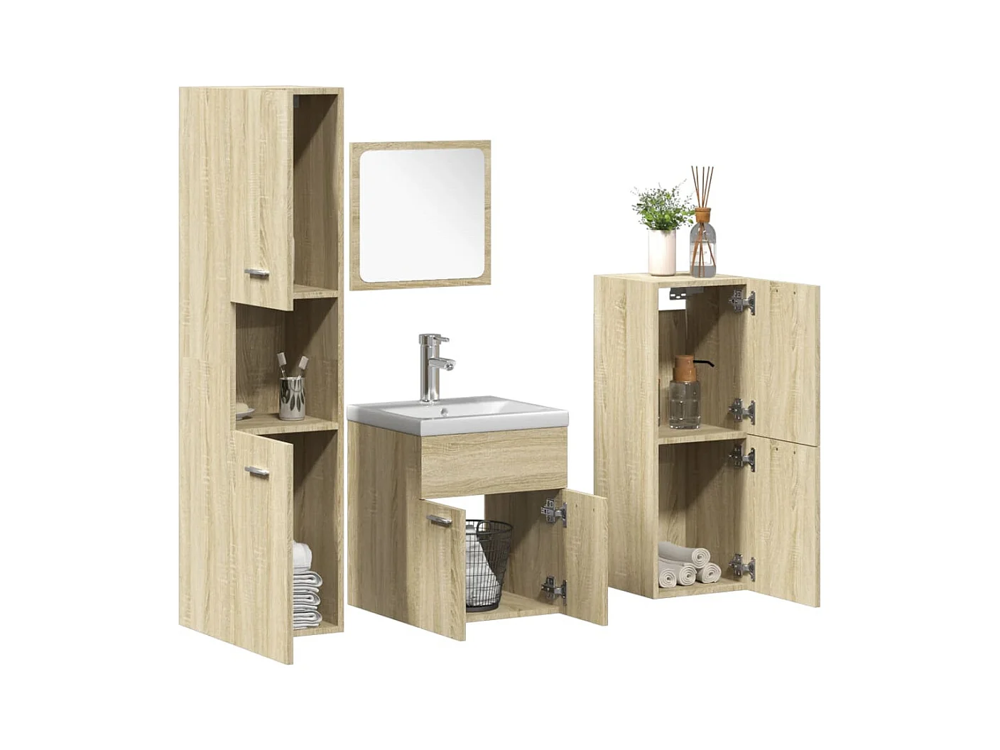 Badkamermeubelset Wandmontage 4 stuks Antiek Hout