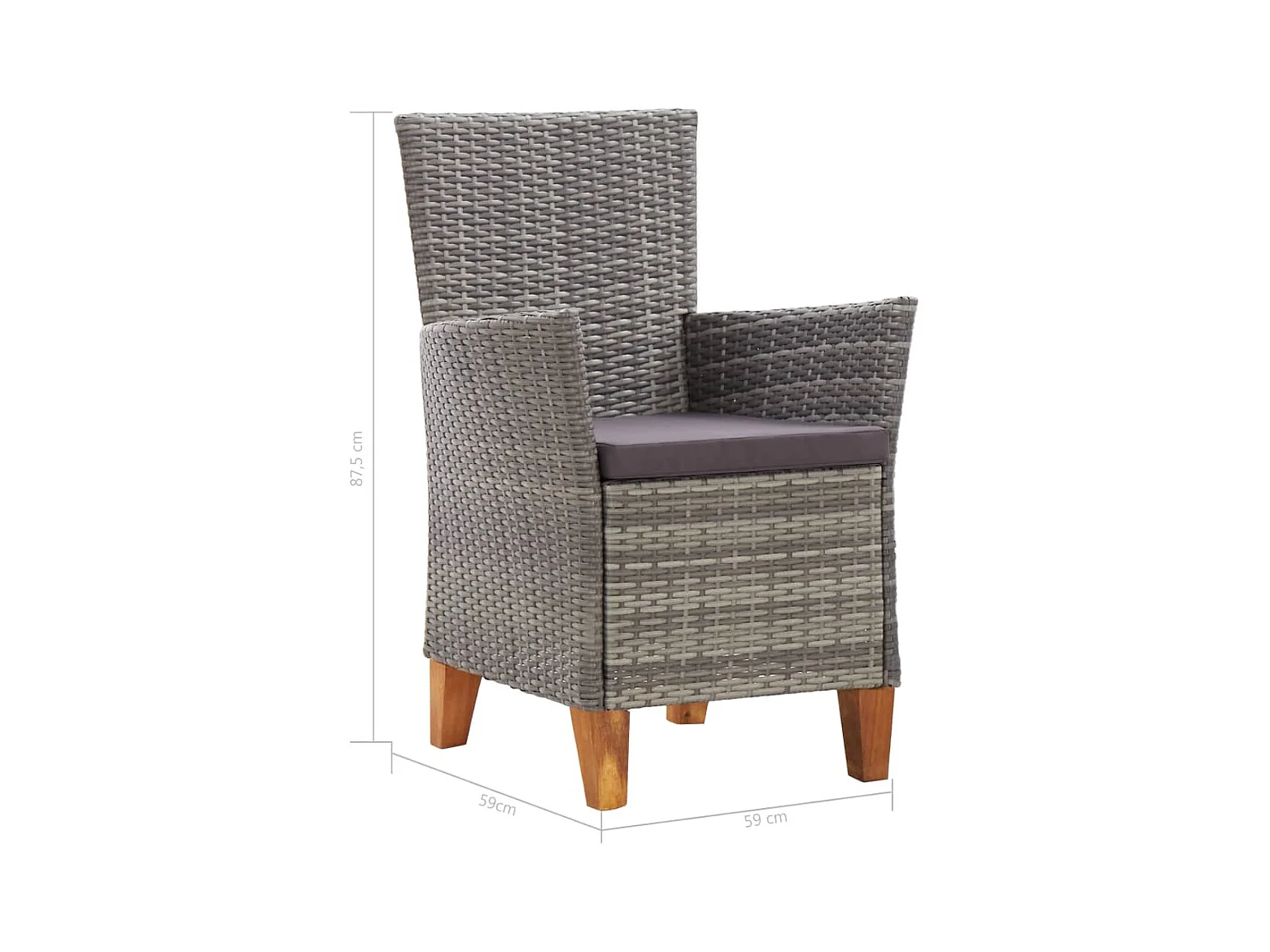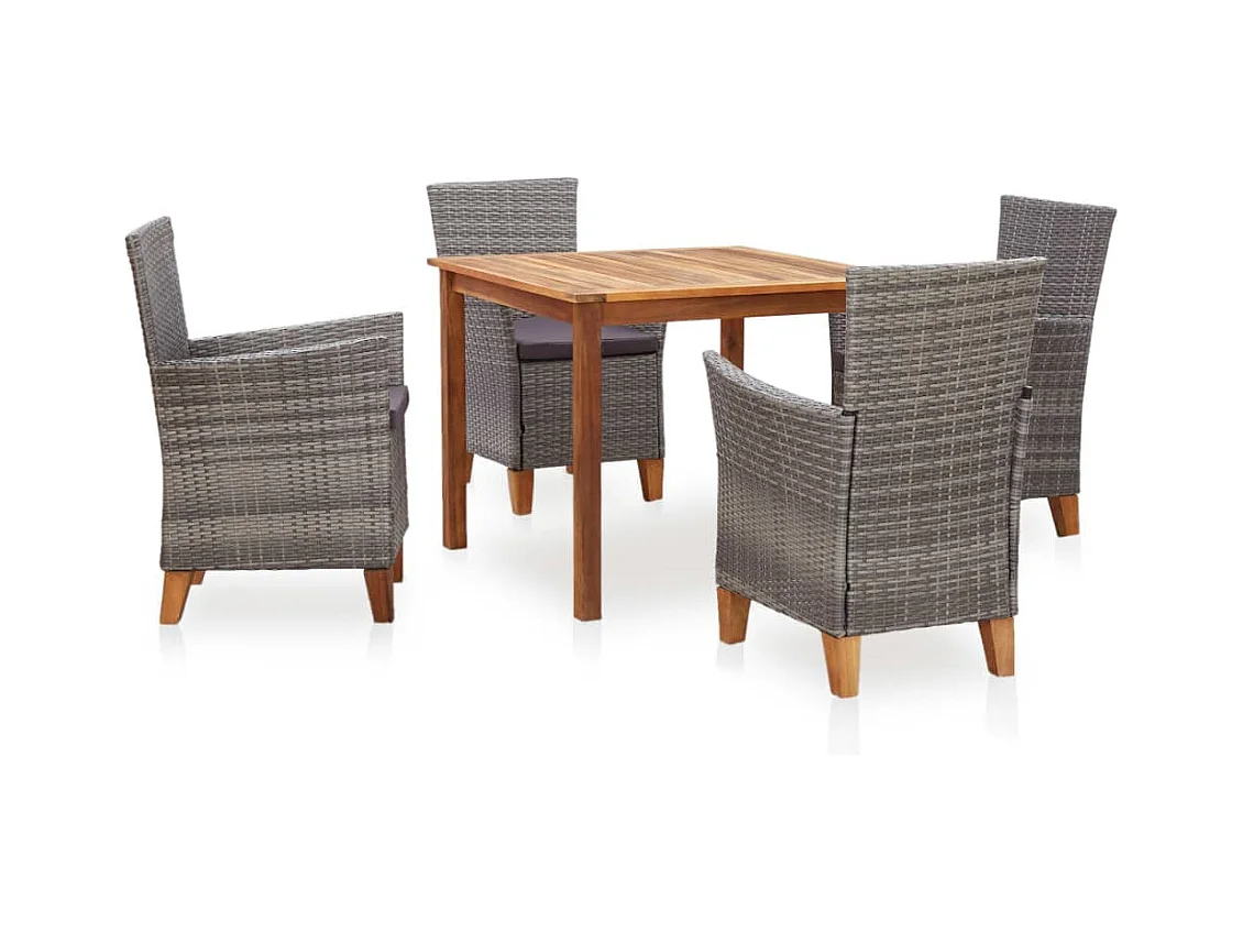 5-delige Eethoek poly rattan en massief acaciahout grijs