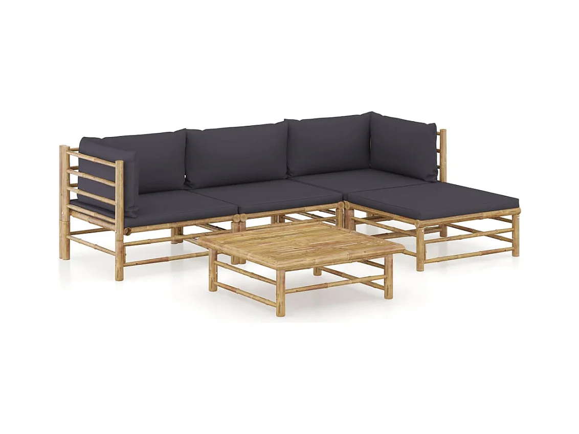 5-delige Loungeset met donkergrijze kussens bamboe