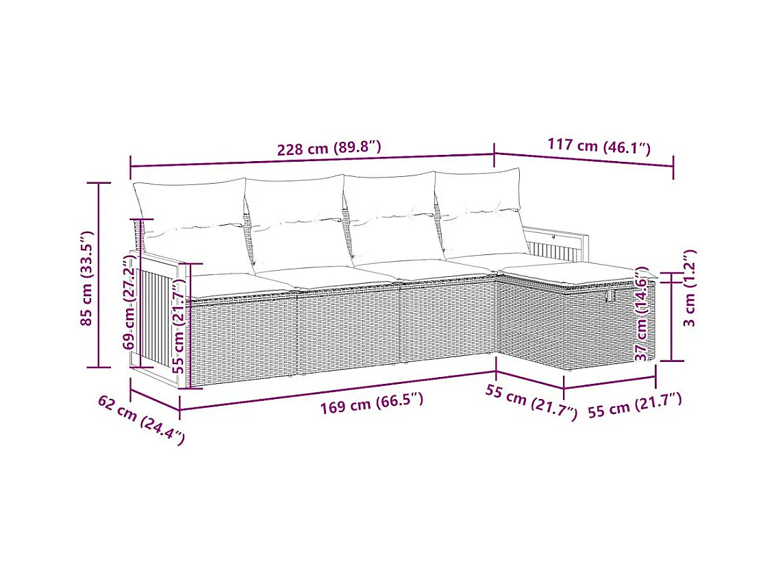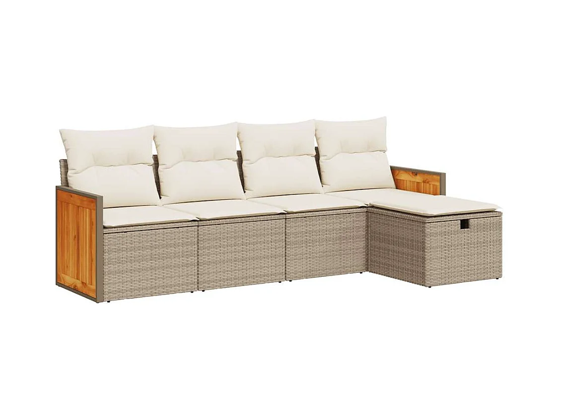 5-delige Loungeset met kussens poly rattan beige