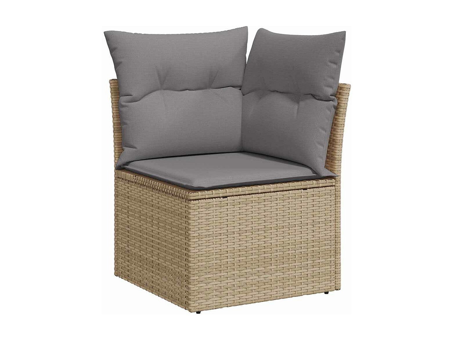 5-delige Loungeset met kussens poly rattan en acaciahout beige