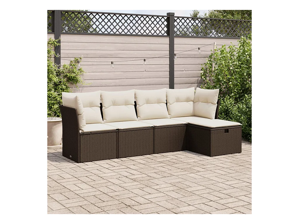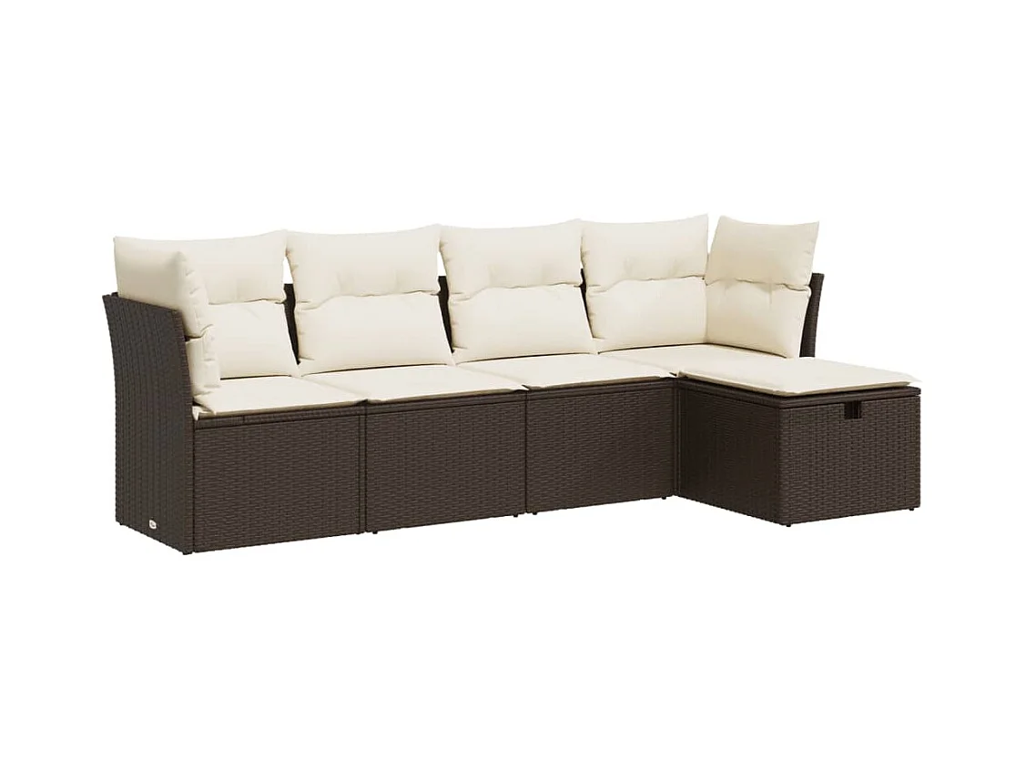 5-delige Loungeset met kussens poly rattan bruin