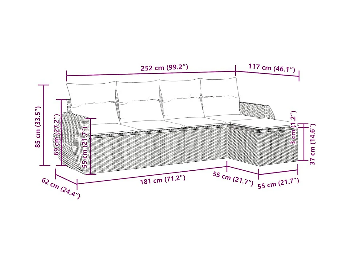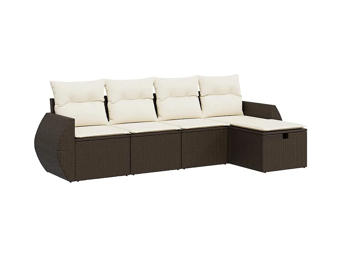 5-delige Loungeset met kussens poly rattan bruin