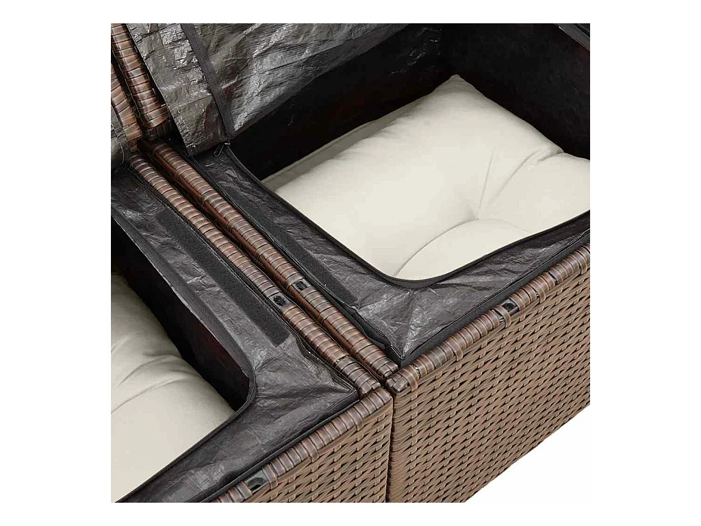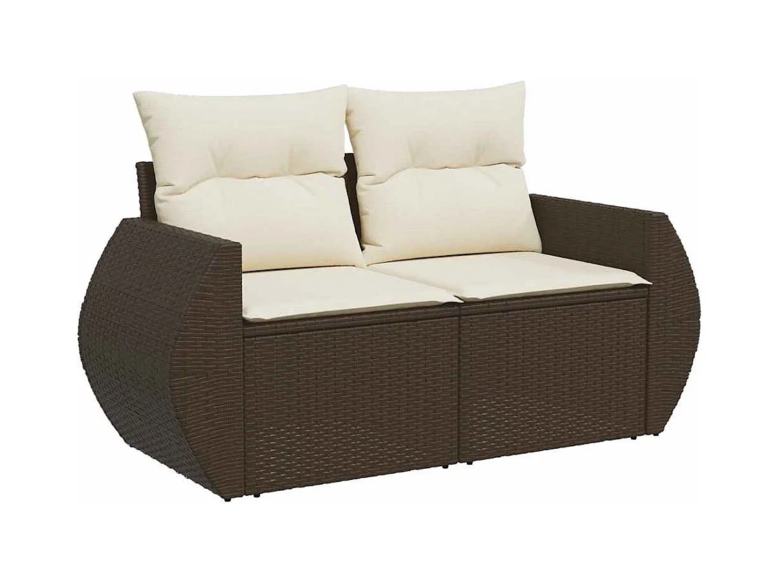 7-delige Loungeset met kussens poly rattan bruin