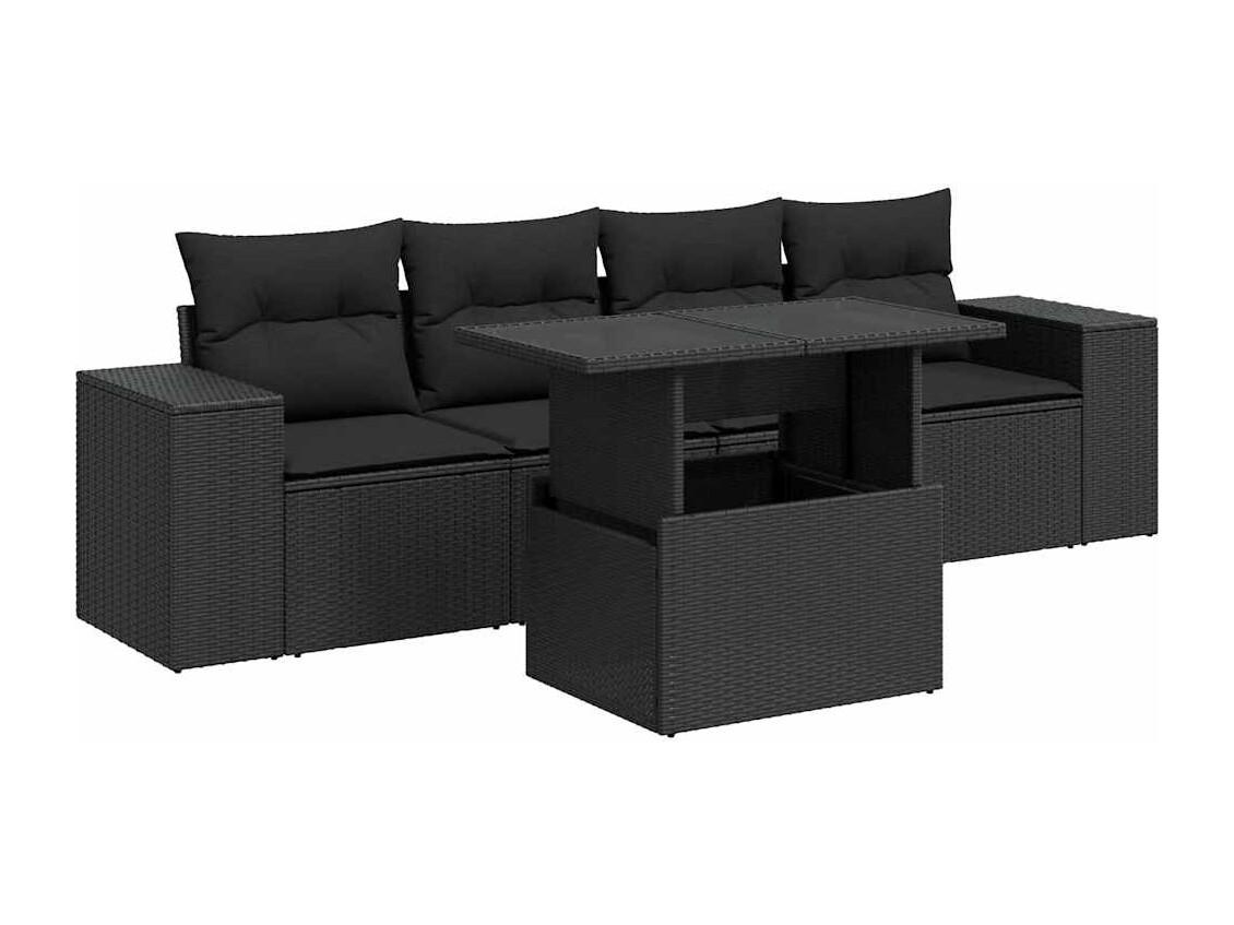5-delige Loungeset met kussens poly rattan acacia zwart